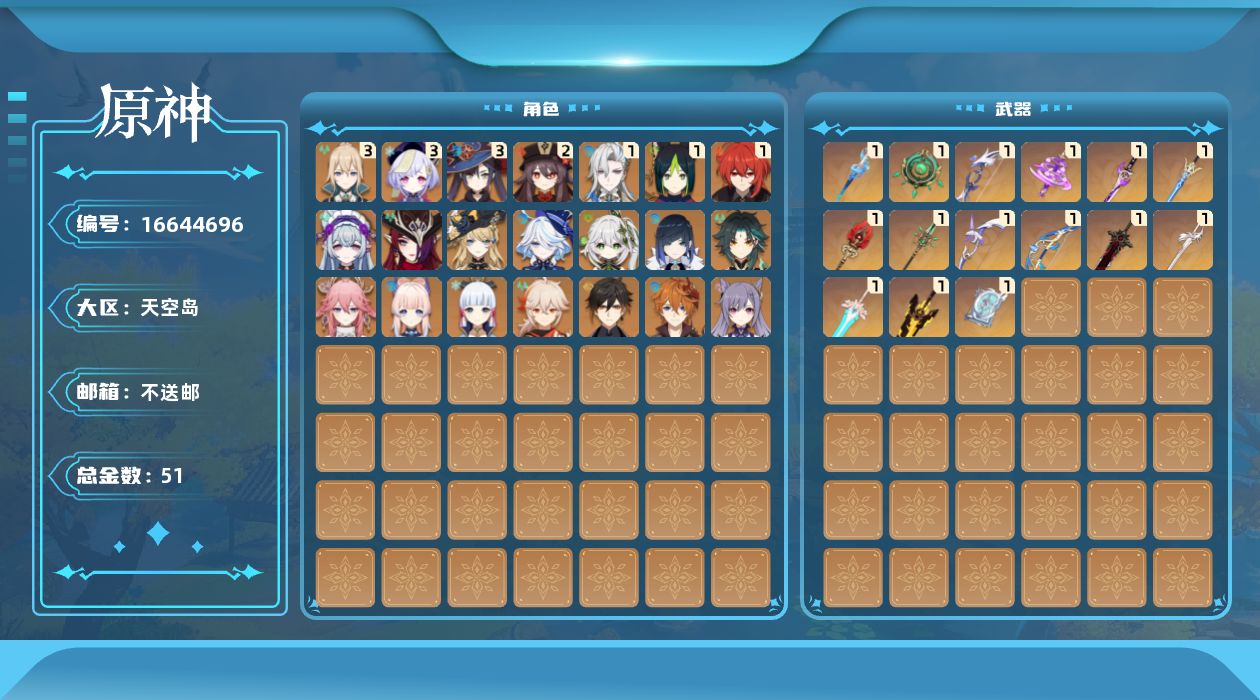 [16644696]60级/51黄/女主/21个五星角色/16个五星武器