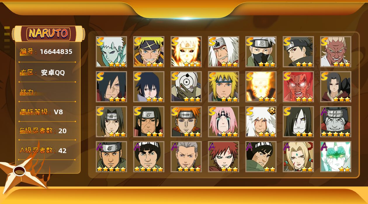 [16644835]VIP8,677W战力,S忍20个,A忍42个,十尾带土已出。