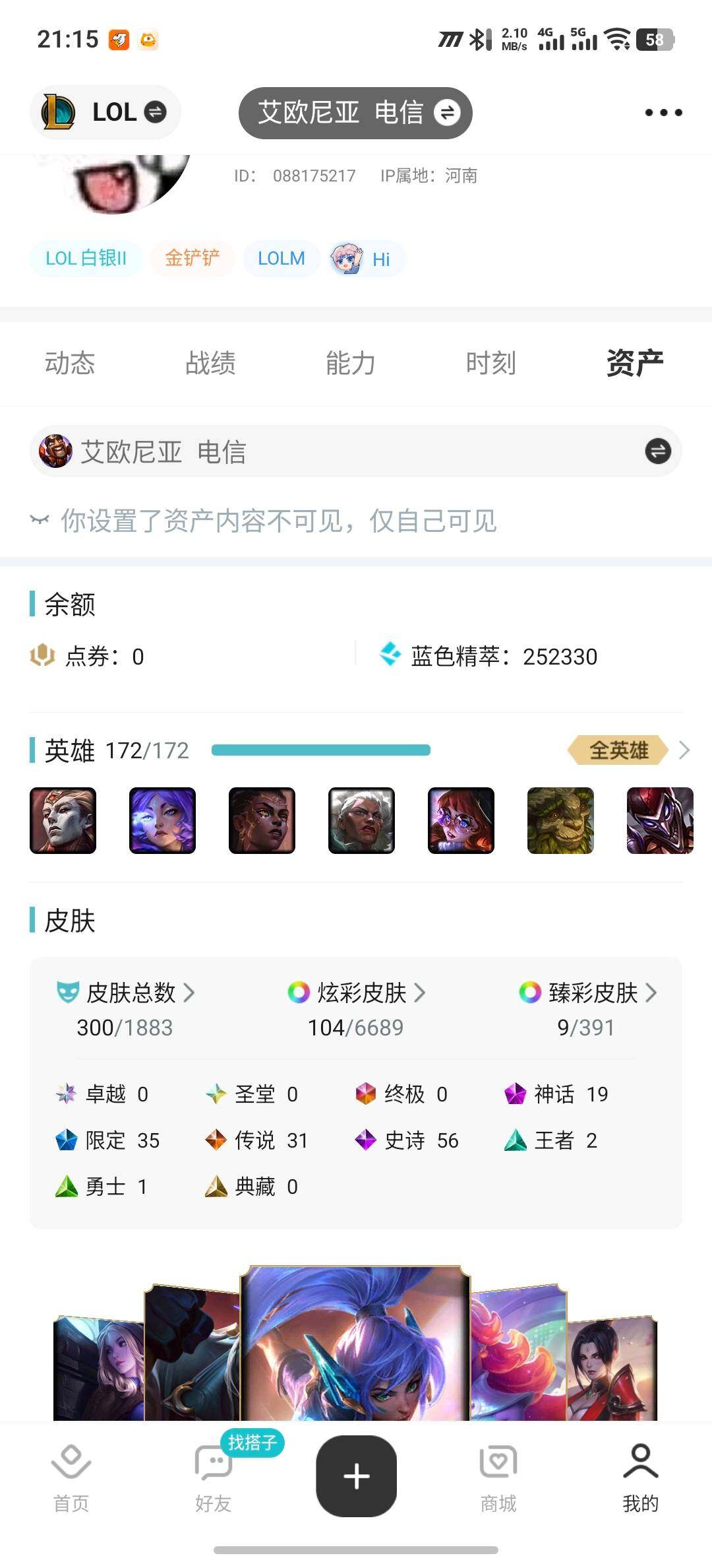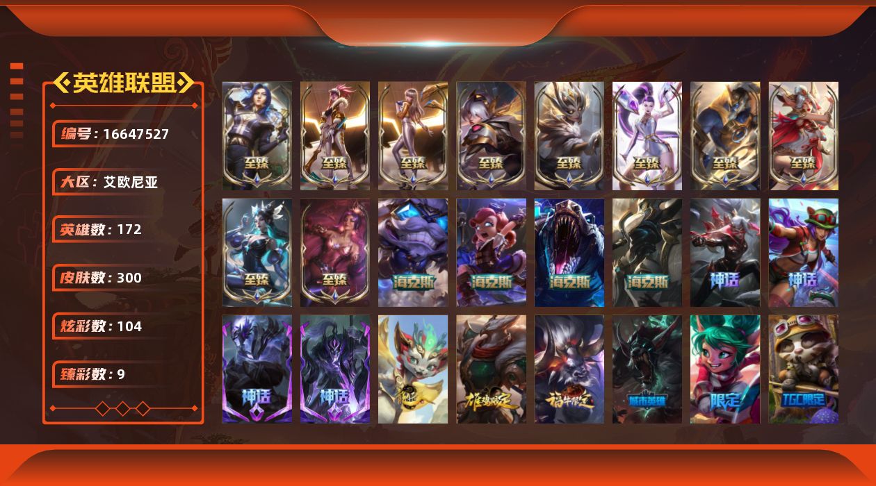 [16647527]【店主推荐捡漏号】白银段位-172英雄-300皮肤-104炫彩-0终极-19神话-35限定-31传说-56史诗