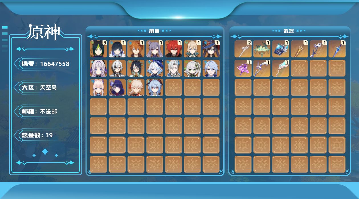 [16647558]59级/39黄/男主/20个五星角色/9个五星武器