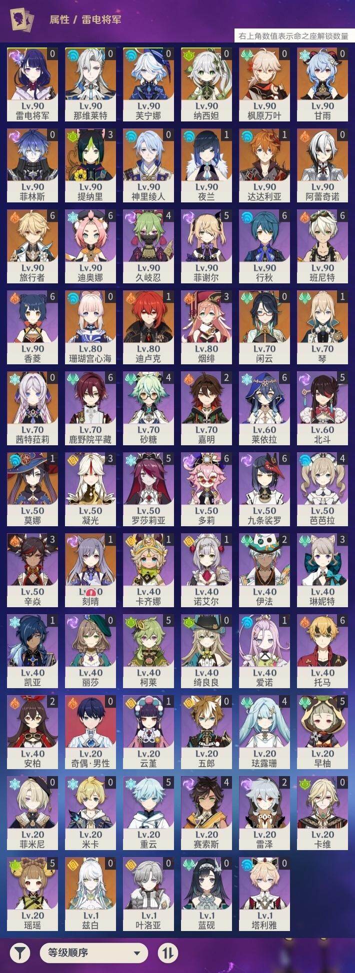 - [16563071]56级/29黄/女主/18个五星角色/4个五星武器 0命阿蕾奇诺,0命闲云,1命那维莱特,0命迪希雅,0命纳西妲,0命提纳里,0命雷电将军,0命钟离,0命胡桃,0命宵宫,0命温迪,2命七七,3命莫娜,0命迪卢克,0命基尼奇,0命茜特菈莉,0命丝柯克,0命哥伦比娅,精1万世流涌大典,精1薙草之稻光,精2飞雷之弦振,精1天空之脊