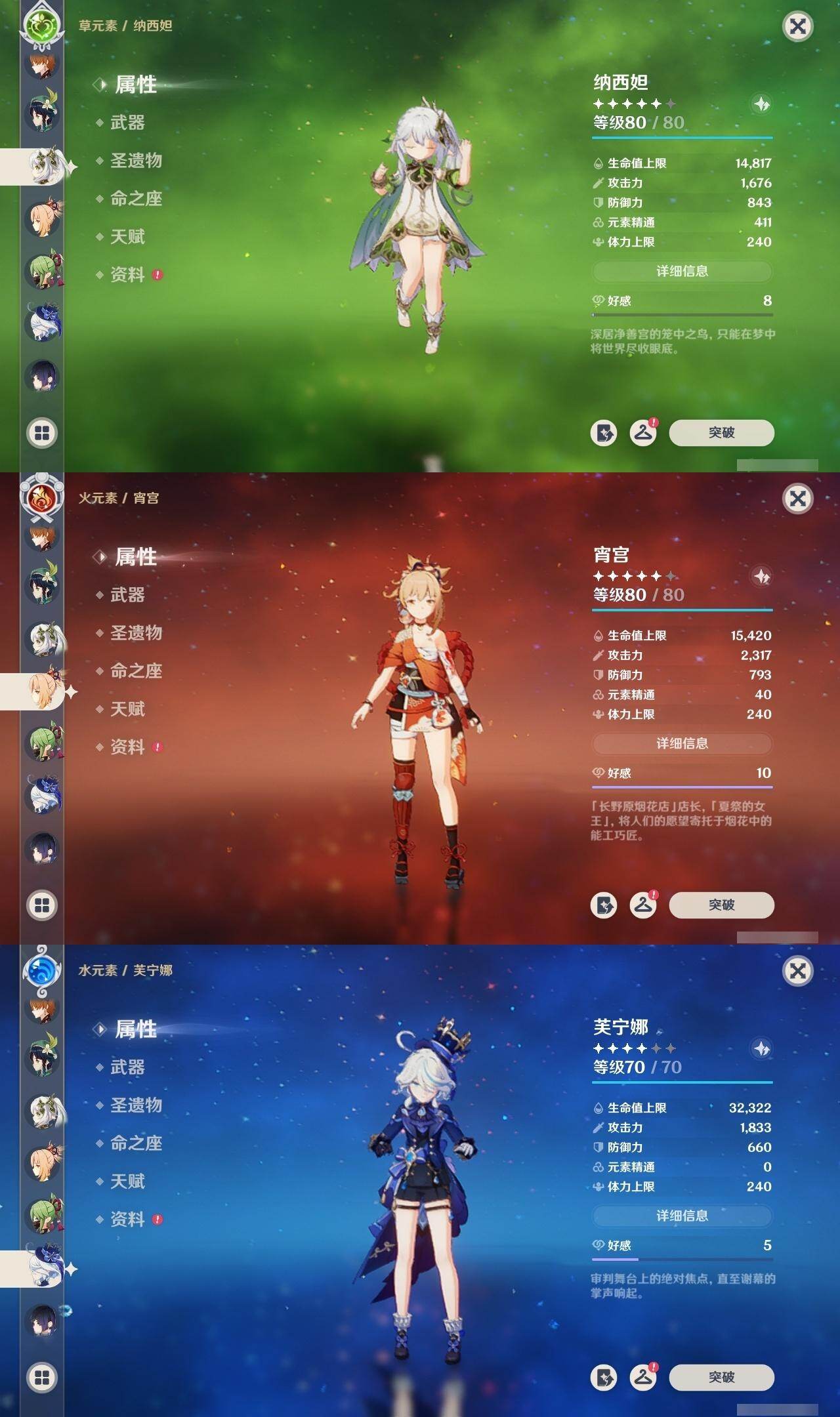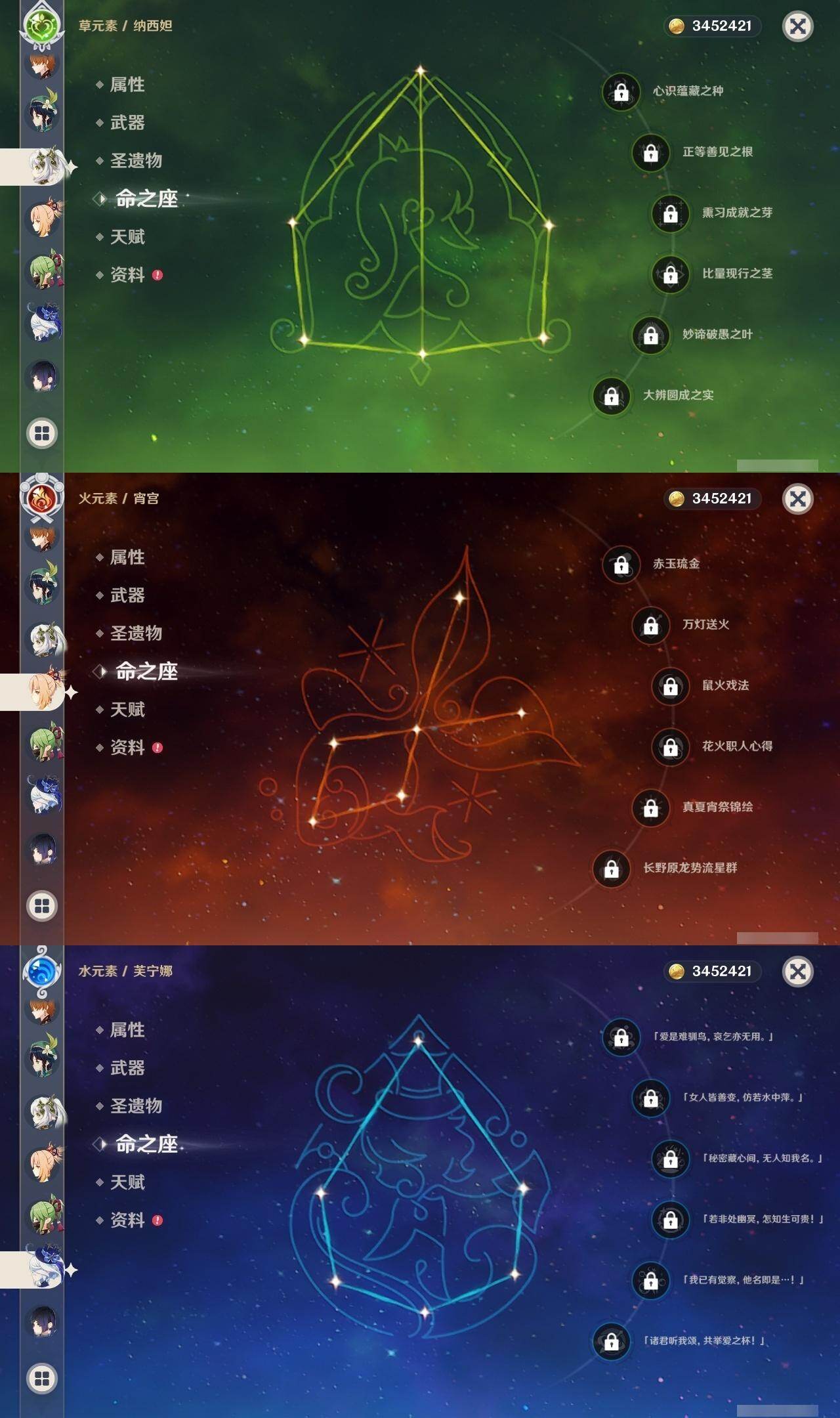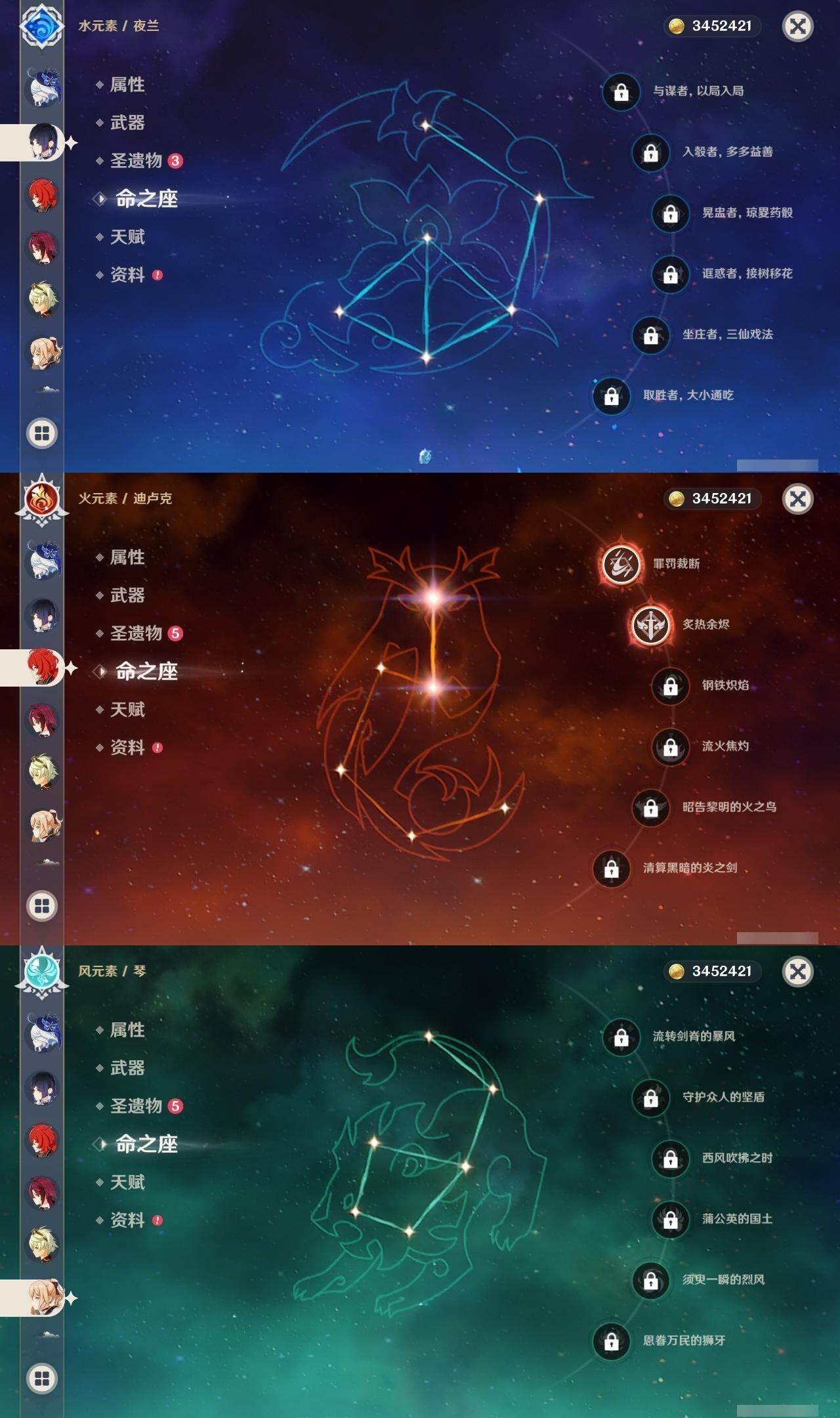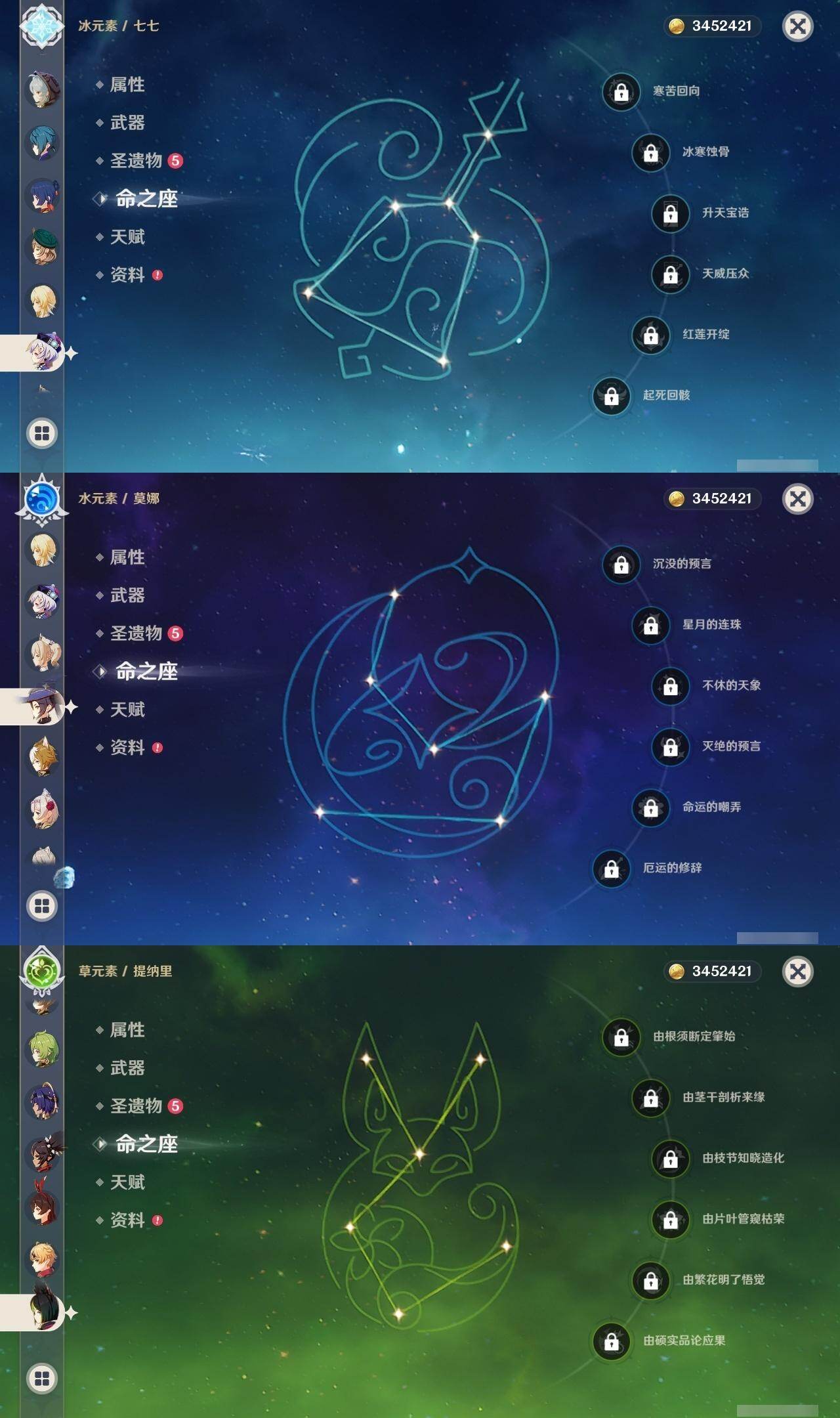 0命希格雯,0命芙宁娜,0命流浪者,0命纳西妲,0命提纳里,0命夜兰,0命雷电将军,0命甘雨,0命宵宫,0命温迪,0命可莉,0命达达利亚,0命七七,0命琴,0命莫娜,2命迪卢克,精1冬极白星,精1四风原典,精1阿莫斯之弓,精1风鹰剑