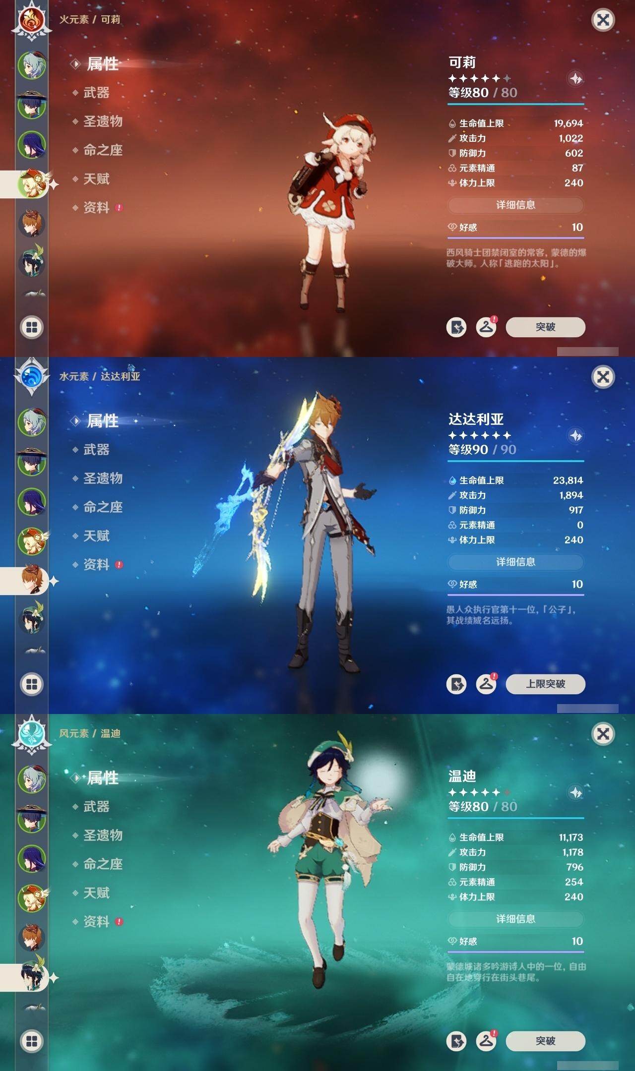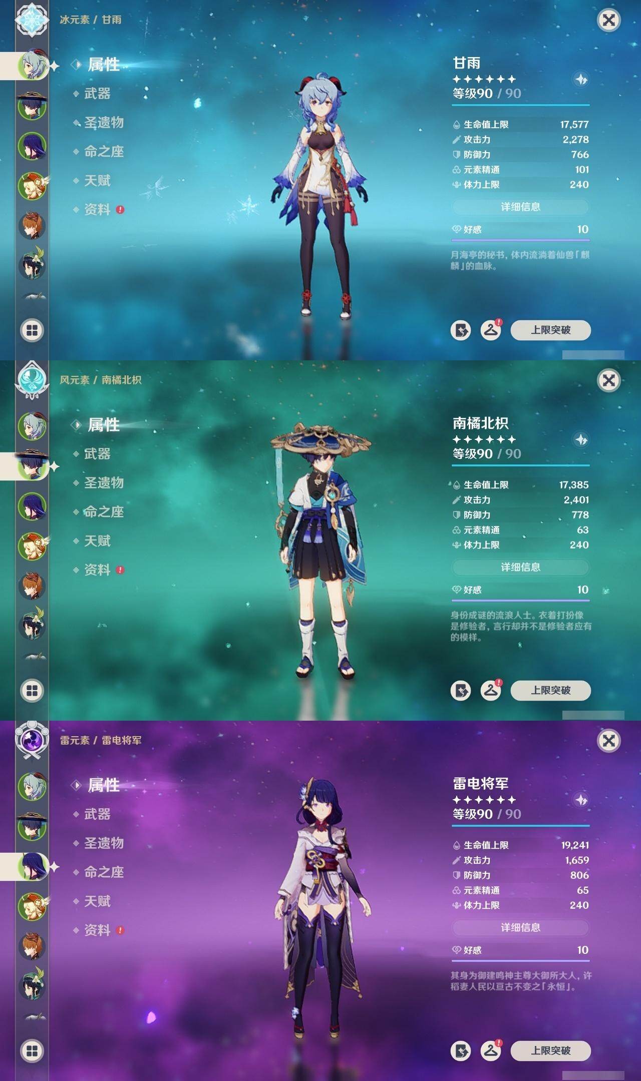 甘雨,雷电将军,可莉,达达利亚,温迪,宵宫,迪卢克,琴,七七,莫娜