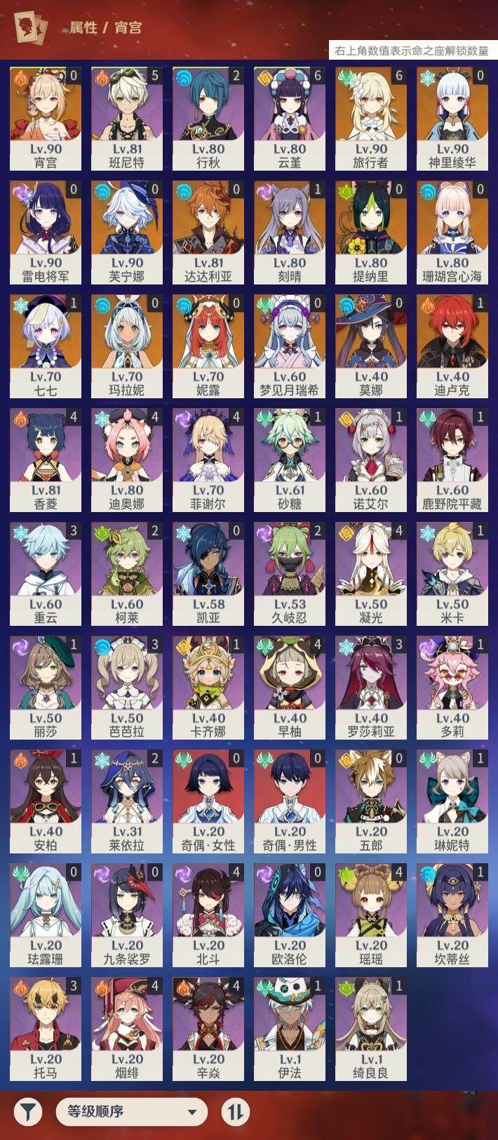 [16647617]57级/28黄/女主/14个五星角色/10个五星武器