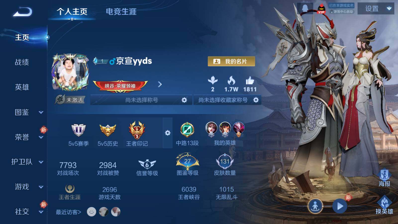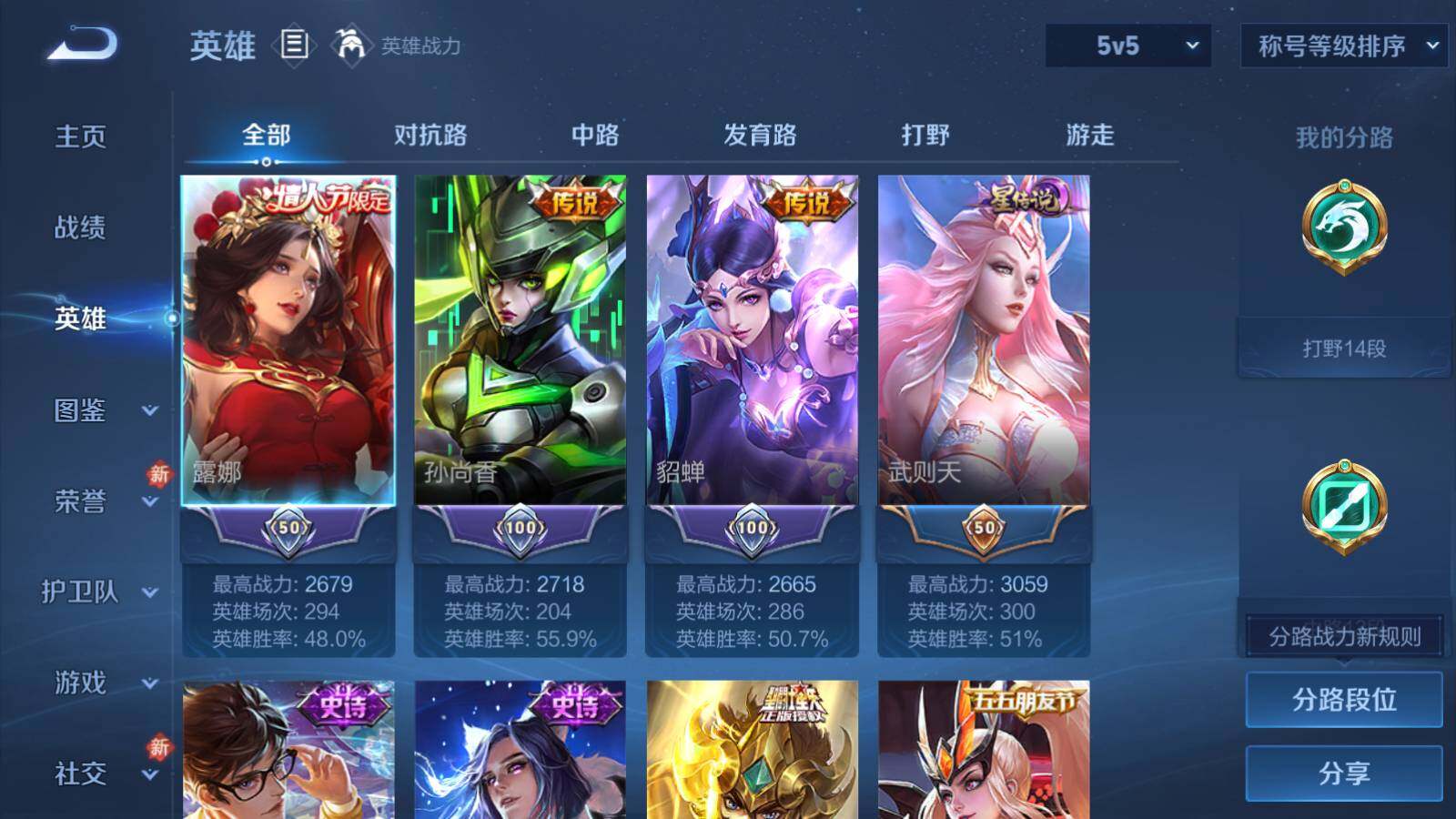 - PX_2094105-实名: 可修改 贵族等级: V7 英雄数: 125 皮肤数: 223 星传说: 未来机甲 传说皮: 炽阳神光,一念神魔,末日机甲-孙尚香,无双飞将,妄想实况 限定皮: 时雨天司,岱宗,蜜橘之夏,青龙志,至尊宝,武陵仙君,寅虎·赤拳,五谷丰年,诗剑行