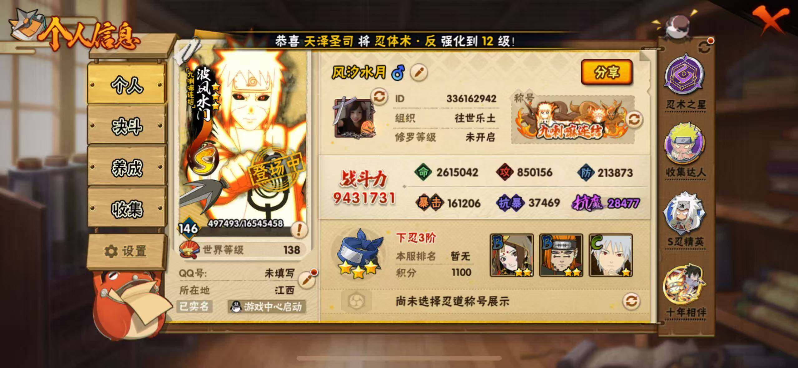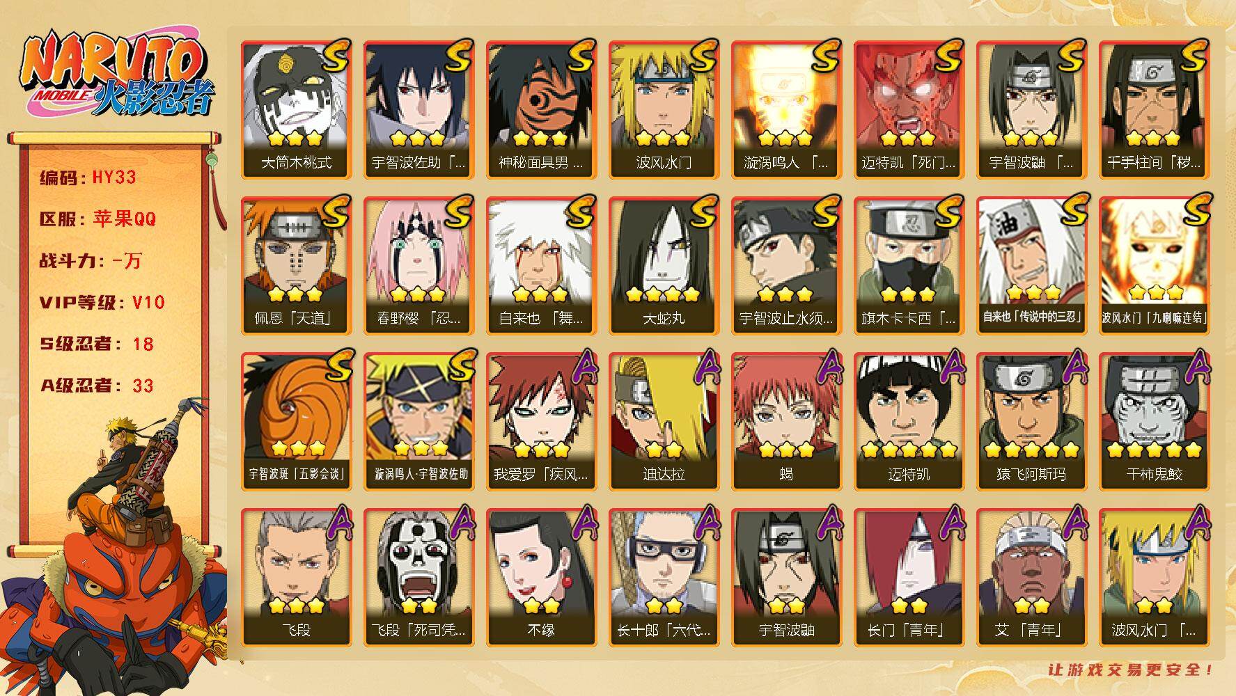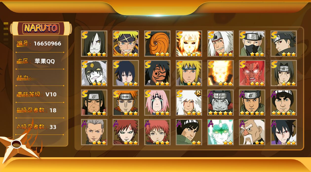[16650966] VIP10,943W战力,S忍18个,A忍33个。通灵熊猫,秽土二代50片。