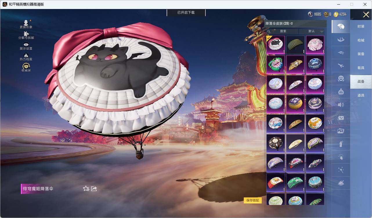 【粉色降落伞】:百万伏特降落伞,彩虹甜喵降落伞,萌物绒绒降落伞,精灵梦叶罗丽降落伞,鸢尾晶梦降落伞,动力核心降落伞,金蛇镇世降落伞,双重狂想降落伞,冷漠罗丽降落伞,绯穹魔姬降落伞