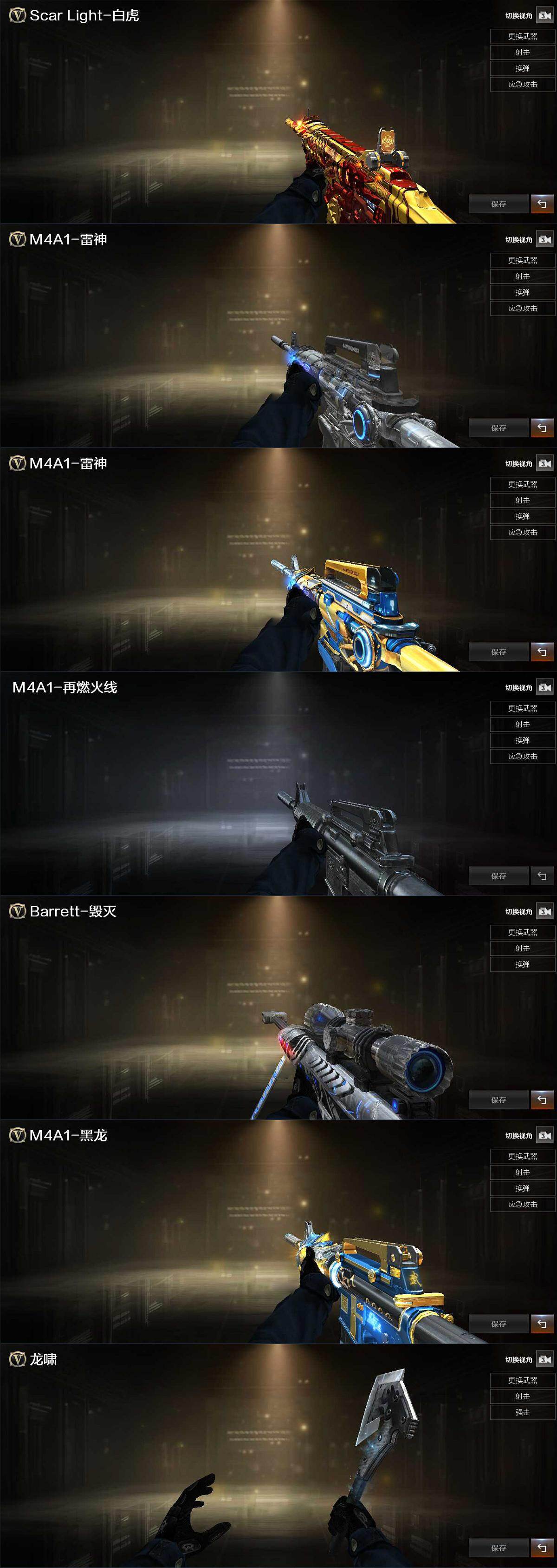 【皮肤】:白虎-大汉风骨,雷神-星空,雷神-冠军之魄,M4A1-再燃火线,毁灭-星空,黑龙-冠军之武,轻型军用手斧-再燃火线