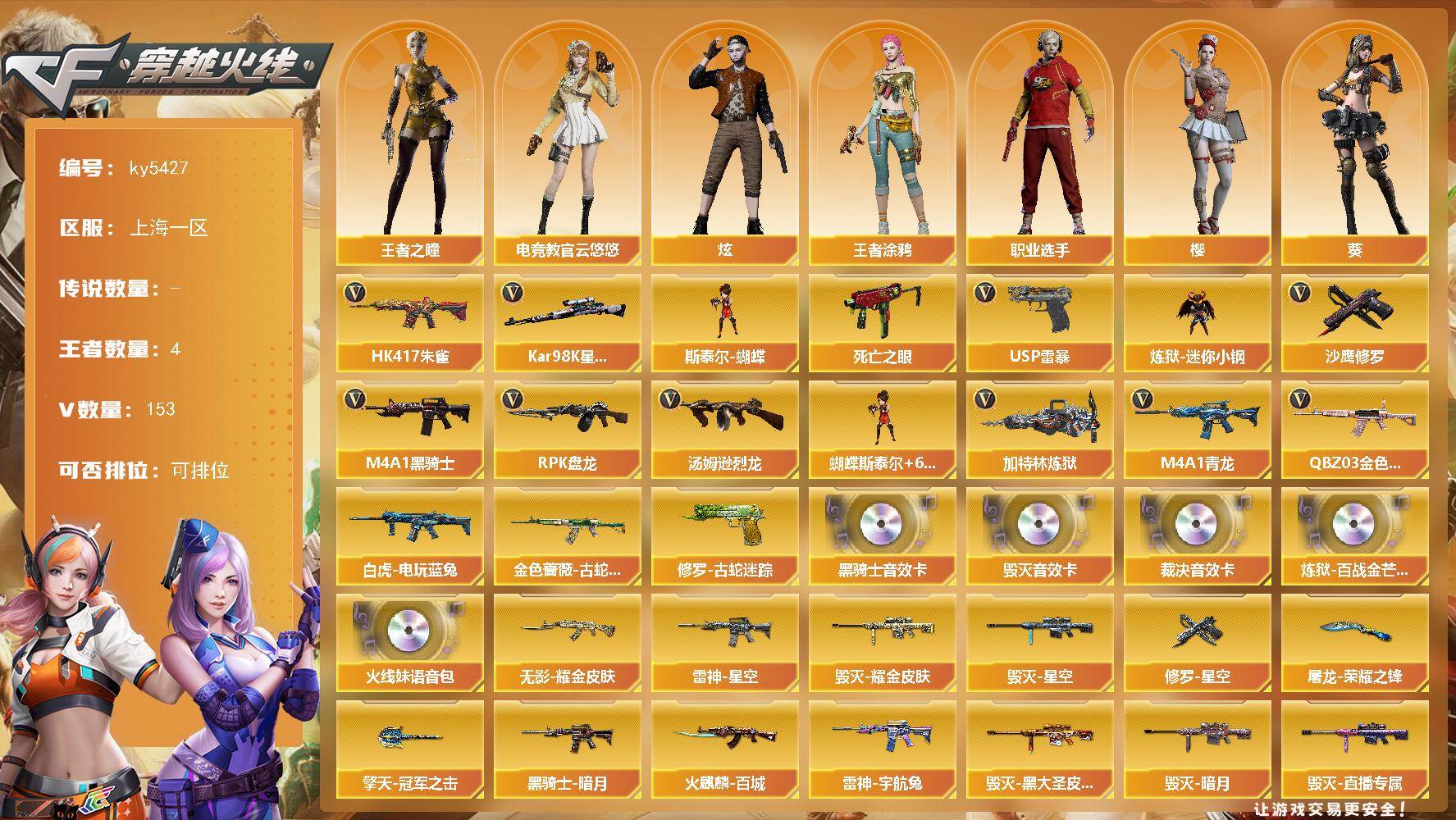 [16527745]上海一区-155V-4王者武器数-0炫金武器数