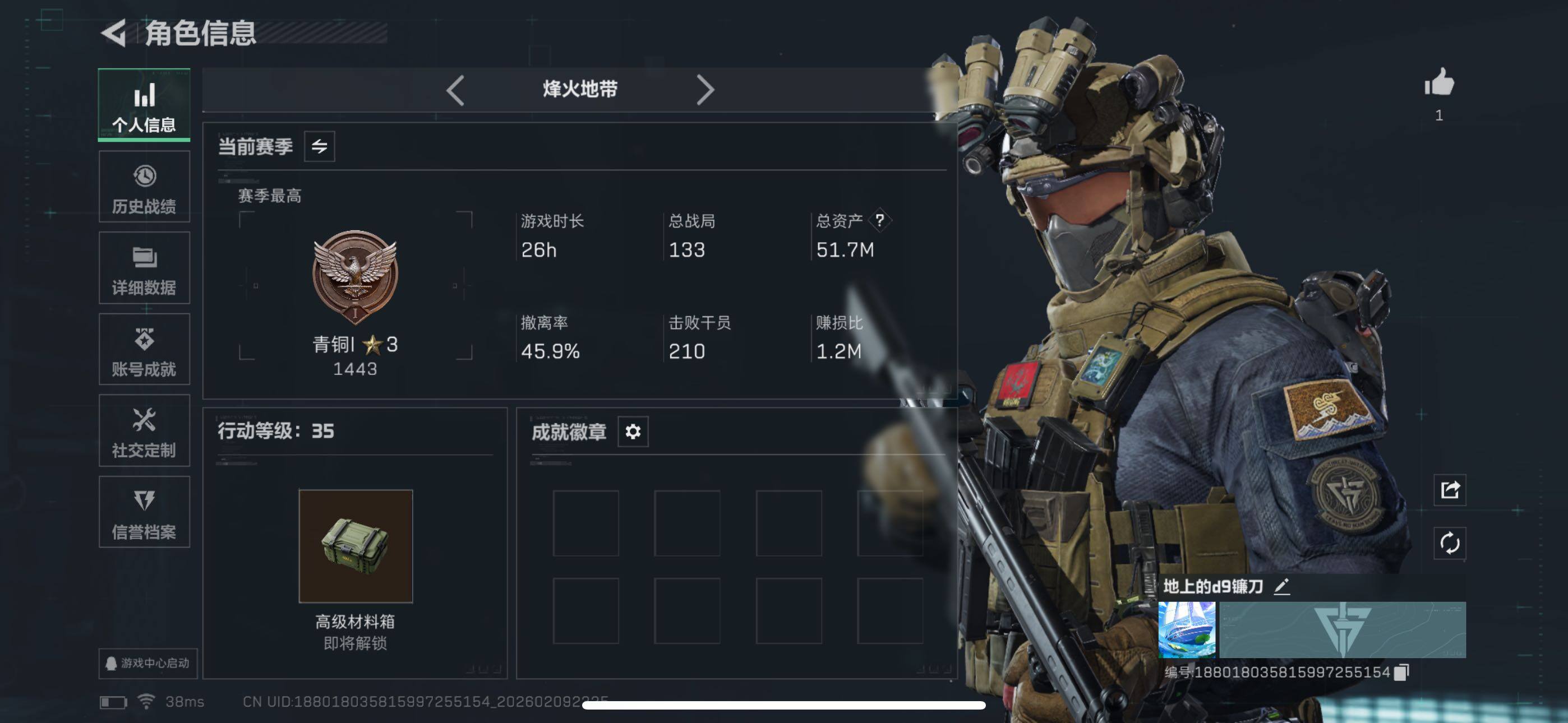 [16667706]【特价出售/店主推荐】51m总资产-5405k哈伏币-35烽火等级-青铜-1战场等级-无军衔