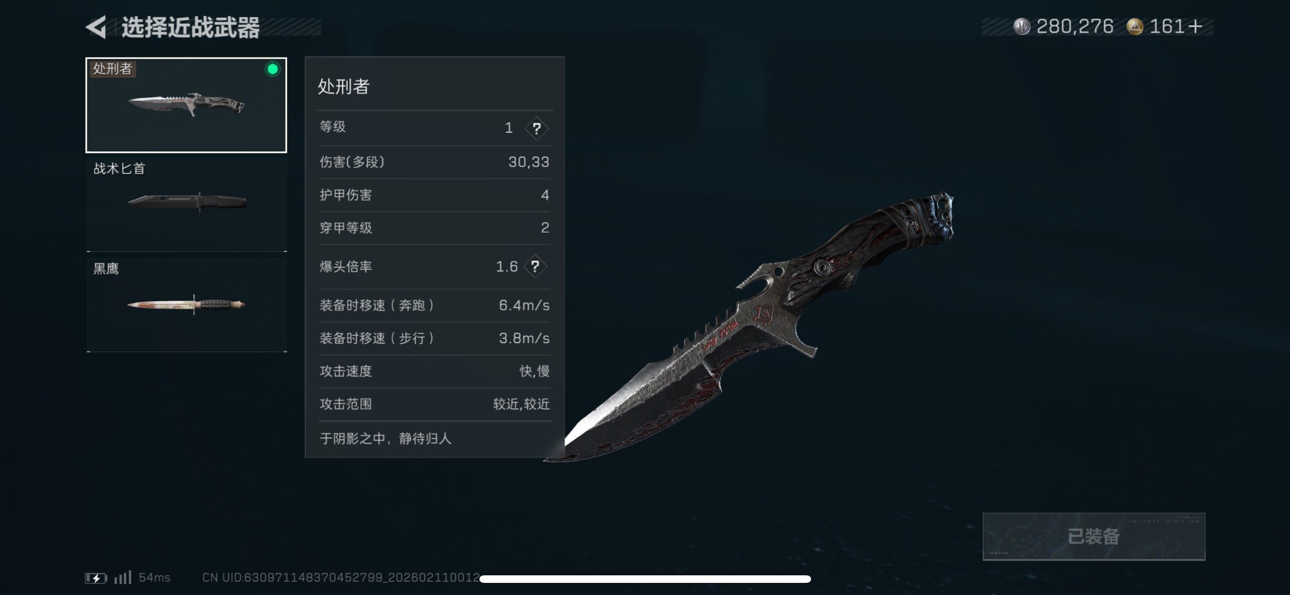 【近战皮肤】:近战-处刑者,近战-黑鹰
