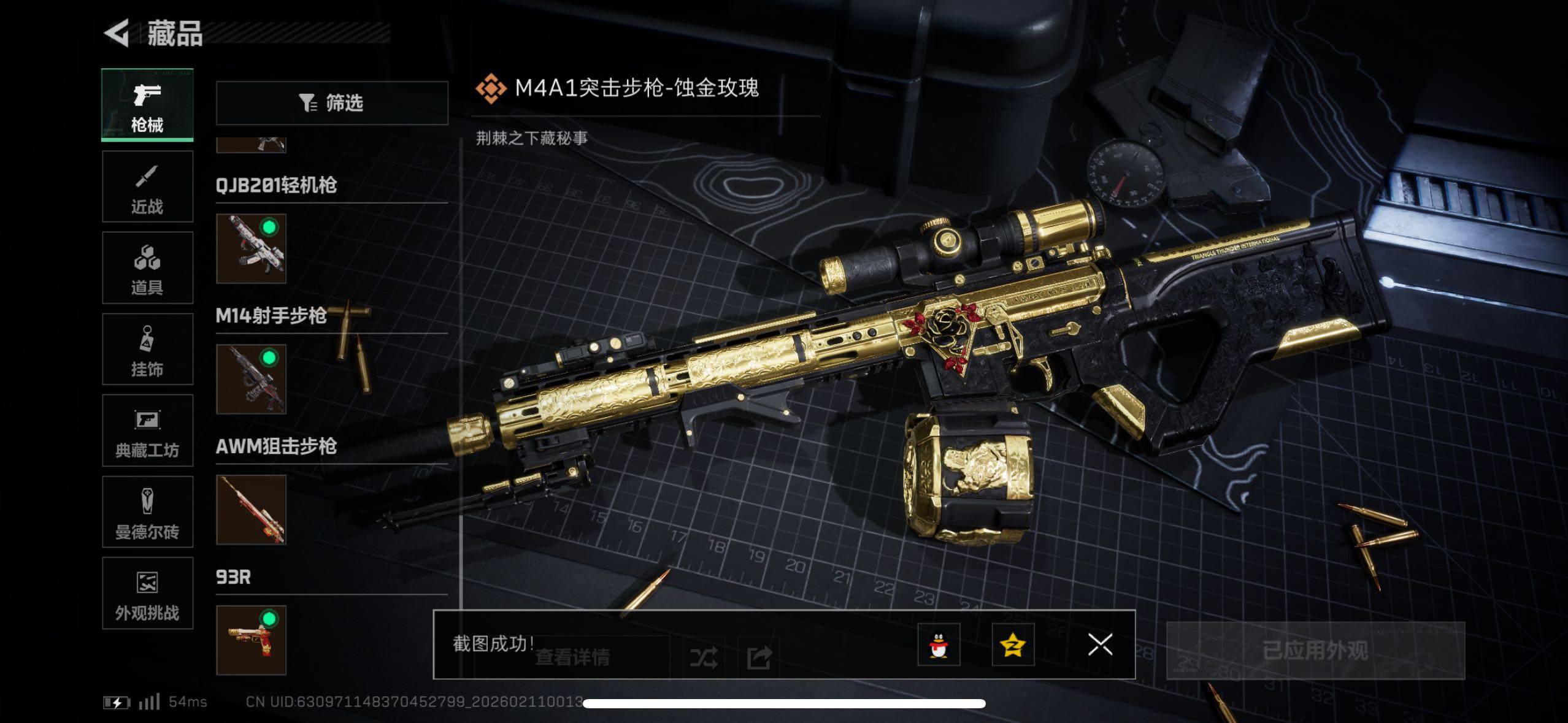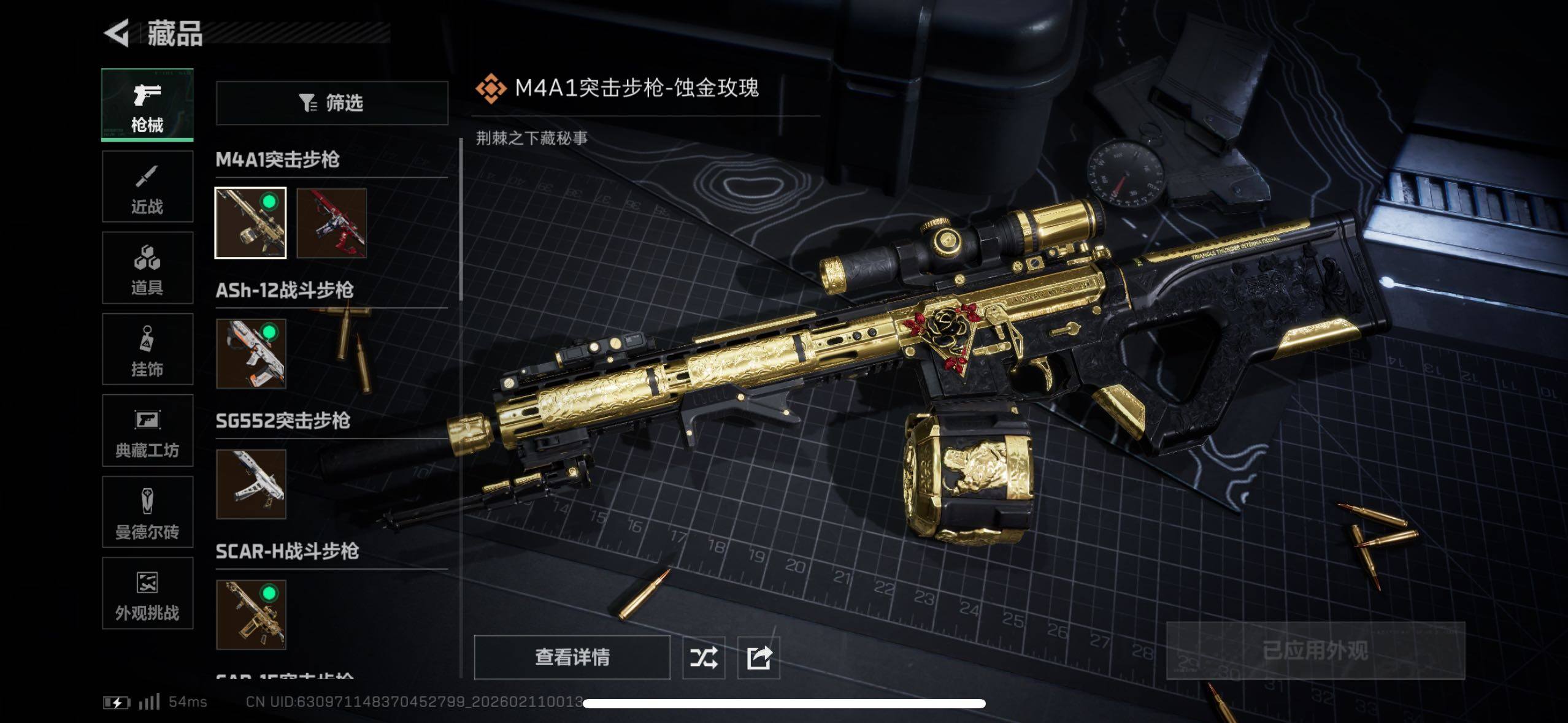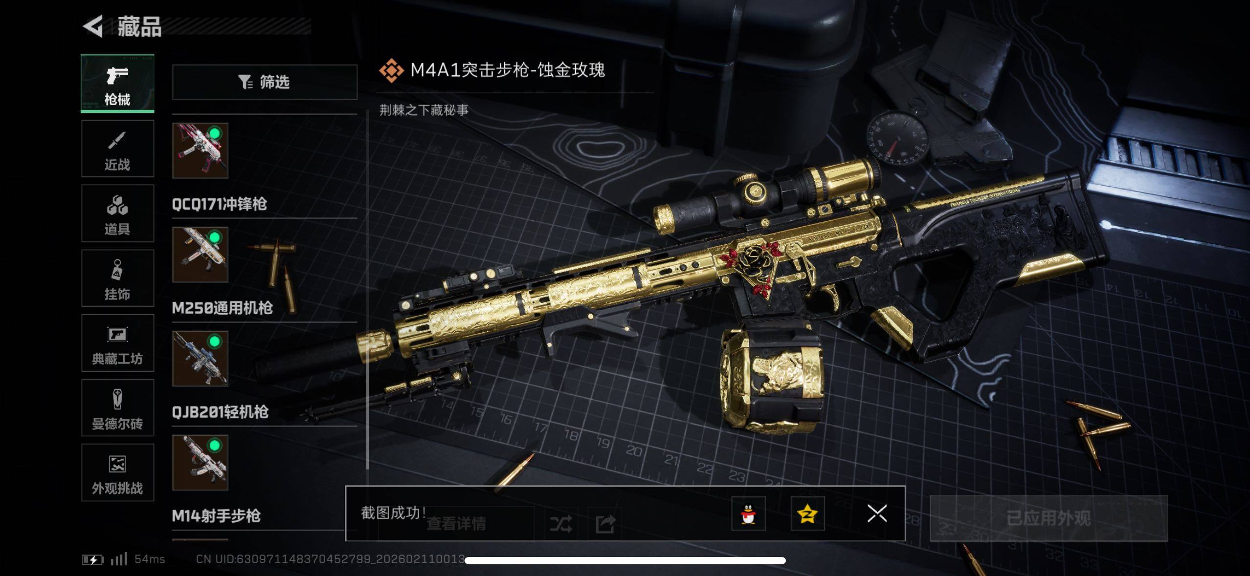 【传说外观】:M4A1突击步枪-蚀金玫瑰,M4A1突击步枪-阿米娅,ASh-12战斗步枪-鹅鸭杀,SG552突击步枪-运动员,SCAR-H战斗步枪-启航,CAR-15突击步枪-阿米娅,腾龙突击步枪-捞点薯条,KC17突击步枪-电锯惊魂,Vector冲锋枪-能天使-午夜邮差,勇士冲锋枪-能天使-午夜邮差,QCQ171冲锋枪-鹅鸭杀,M250通用机枪-骑士之心,QJB201轻机枪-鹅鸭杀,M14射手步枪-电锯惊魂,AWM狙击步枪-捞点薯条,93R-捞点薯条