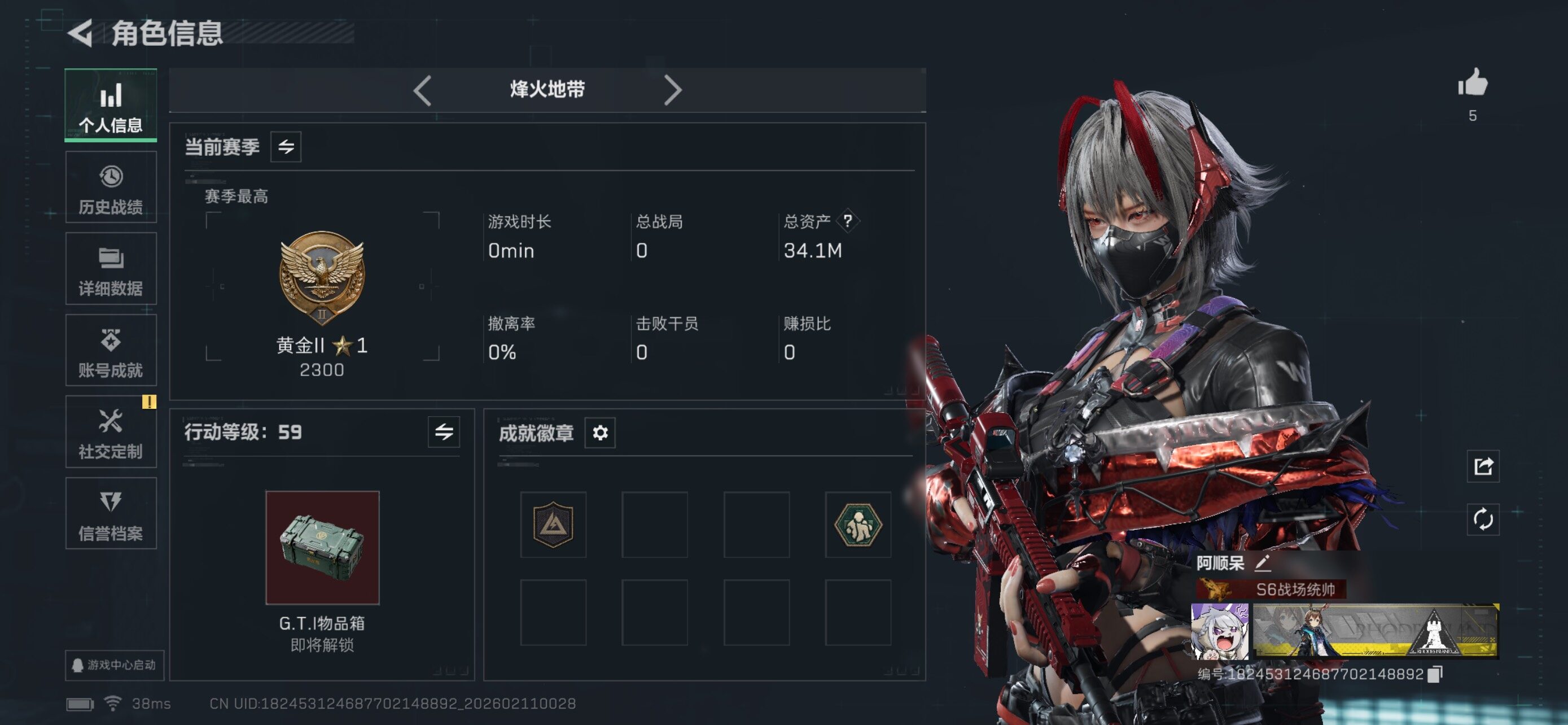 [16667791]【特价出售/店主推荐】34m总资产-686k哈伏币-59烽火等级-黄金-50战场等级-军士长
