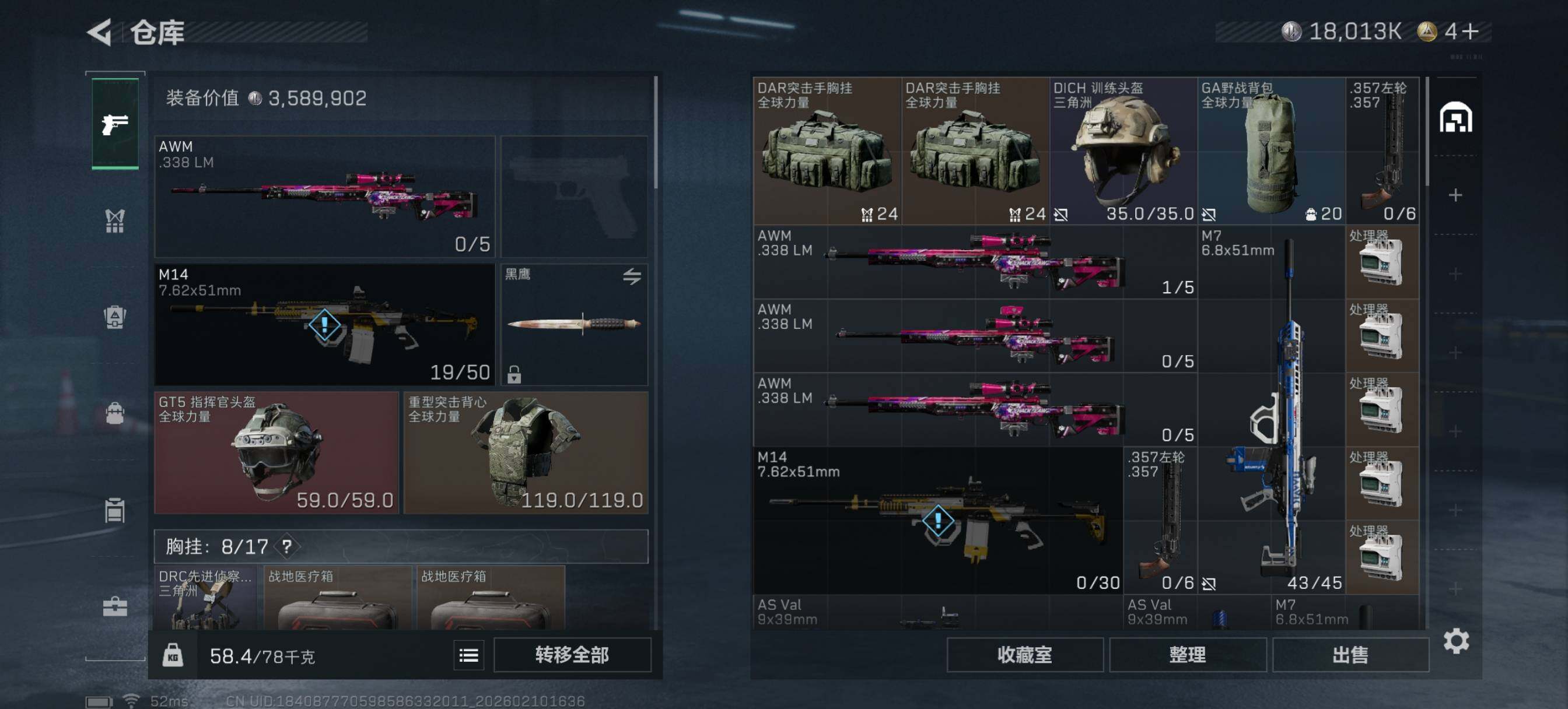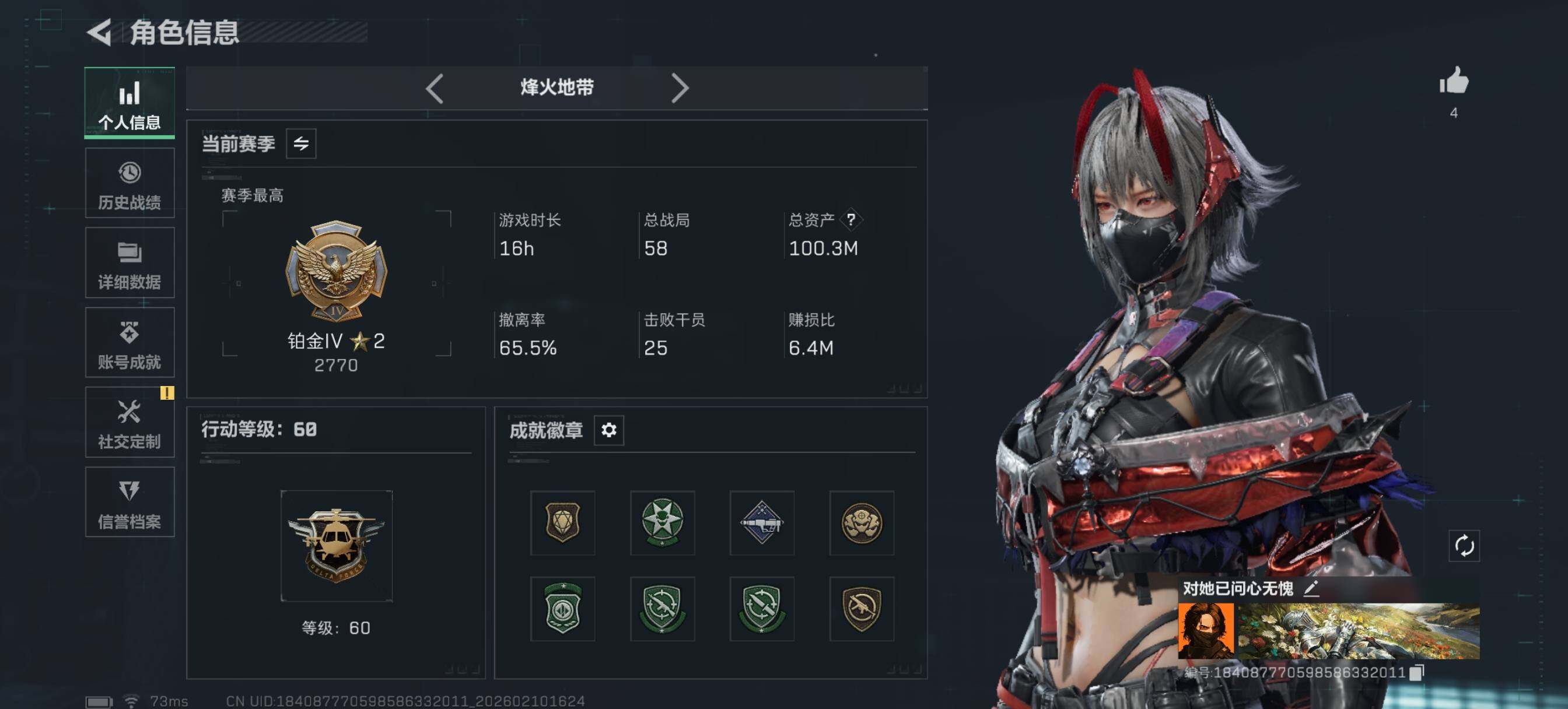 [16667915]【特价出售/店主推荐】100m总资产-18013k哈伏币-60烽火等级-铂金-50战场等级-上等兵
