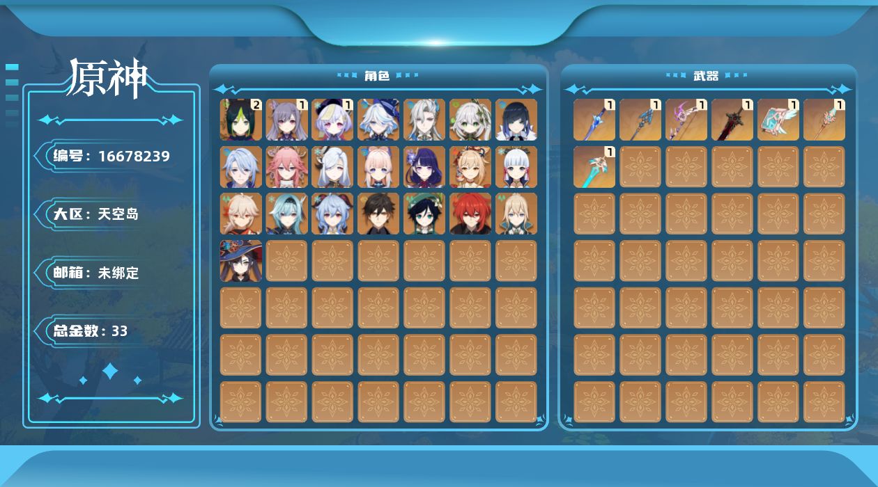 [16678239]60级/33黄/女主/22个五星角色/7个五星武器