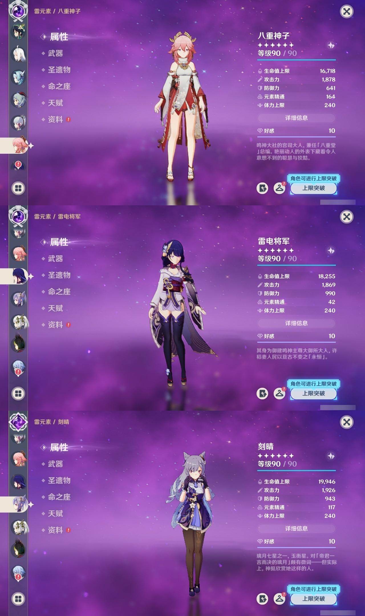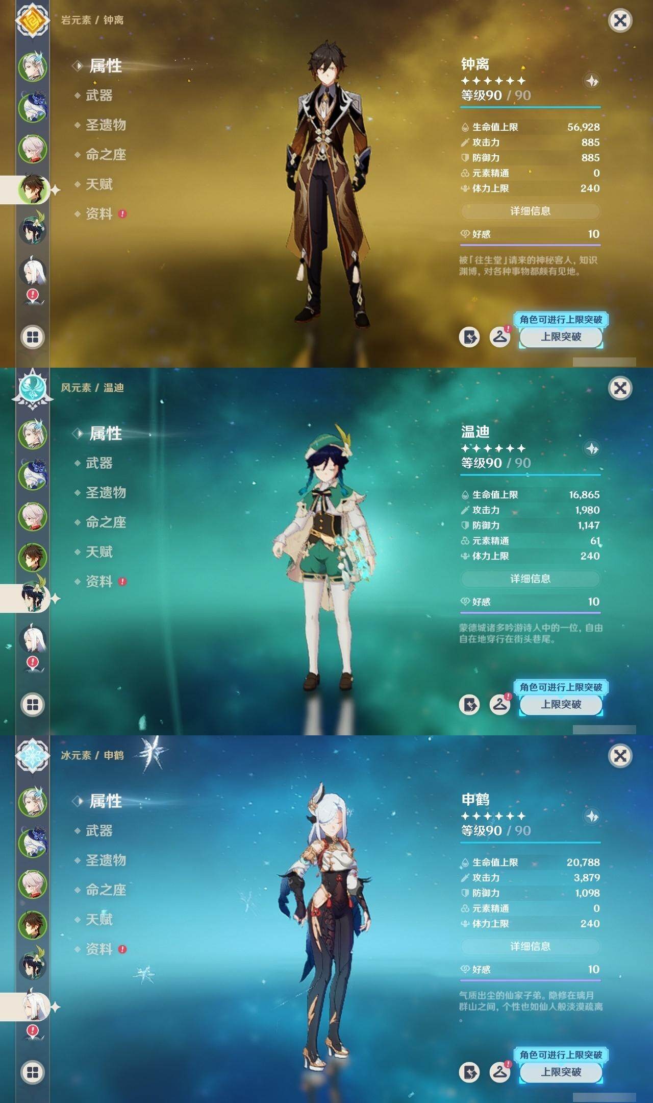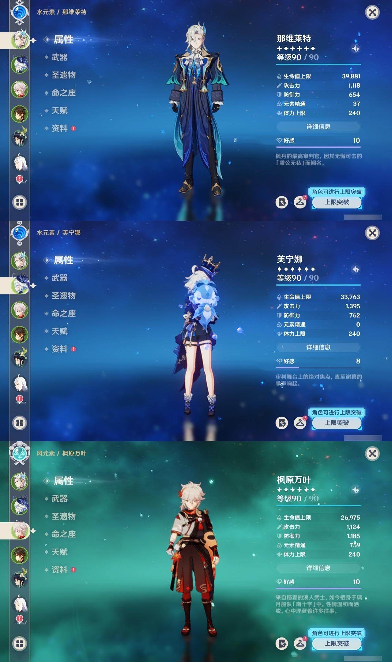 枫原万叶,钟离,温迪,申鹤,优菈,甘雨,神里凌华,八重神子,雷电将军,刻晴,珊瑚宫心海,宵宫,迪卢克,莫娜,七七,琴