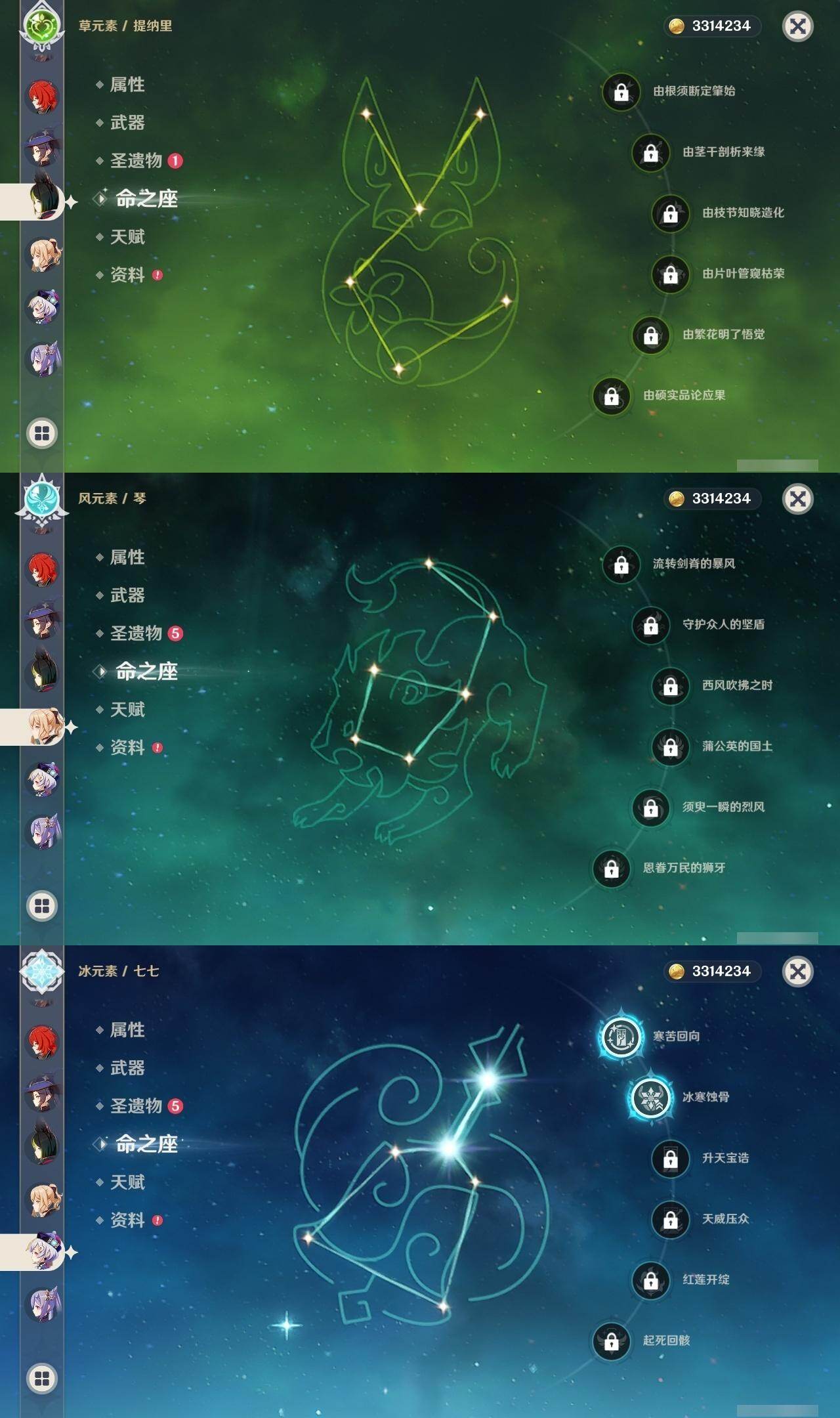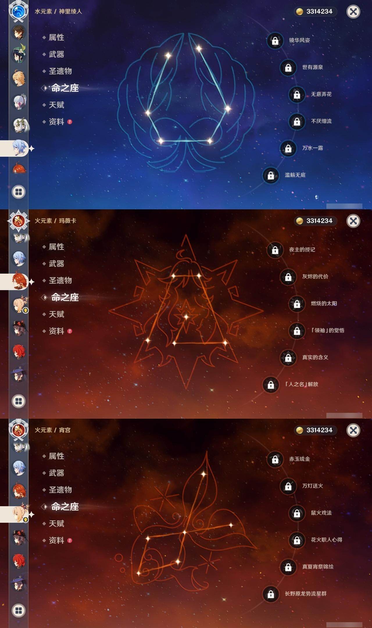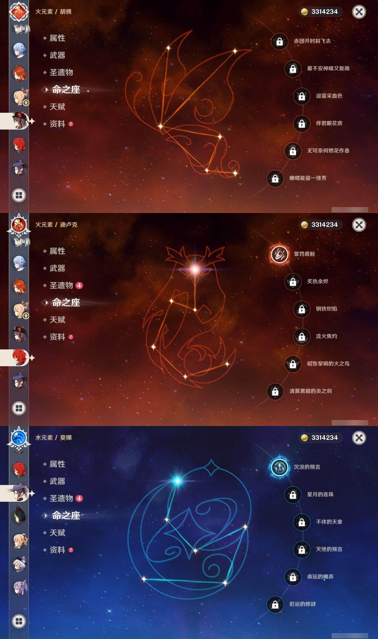 0命芙宁娜,1命迪希雅,0命纳西妲,0命提纳里,0命神里绫人,0命枫原万叶,0命神里绫华,2命钟离,0命胡桃,0命宵宫,0命温迪,0命刻晴,2命七七,0命琴,1命莫娜,1命迪卢克,0命玛薇卡,0命梦见月瑞希,0命菲林斯,精1白雨心弦,精1万世流涌大典,精1赤沙之杖,精1护摩之杖,精1和璞鸢,精1真语秘匣