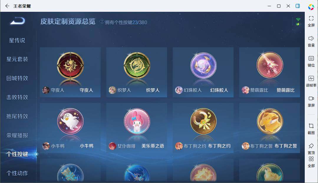 娜可露露晚萤,李元芳逐浪之夏,不知火舞魅语,孙策猫狗日记,阿轲节奏热浪,露娜紫霞仙子,诸葛亮黄金分割率,项羽苍穹之光,孙尚香时之恋人,雅典娜冰冠公主,鲁班七号电玩小子,橘右京修罗,嬴政摇滚巨星,刘禅绅士熊喵,刘禅天才门将,安琪拉时之奇旅,程咬金功夫厨神,刘邦德古拉伯爵,兰陵王暗隐猎兽者,曹操幽灵船长,宫本武藏鬼剑武藏,钟馗乐园奇幻夜,夏侯惇乘风破浪,花木兰水晶猎龙者,铠曙光守护者,墨子金属风暴,百里守约特工魅影,嫦娥拒霜思,李白千年之狐,貂蝉唤灵魅影,蒙犽百解令,安琪拉乘龙·聚宝船,赵怀真器灵·浮梦炉,亚连糖绘人间