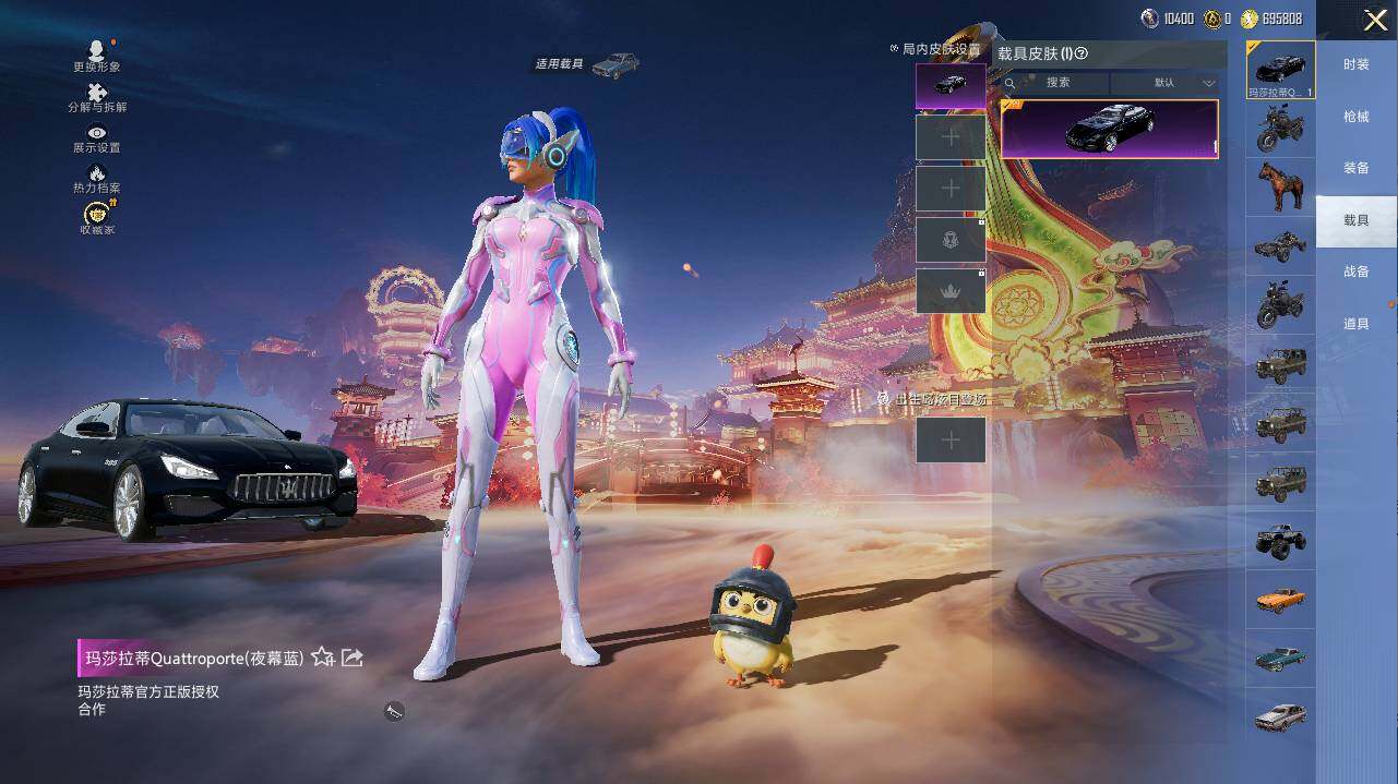 - [15516996]【特价出售/店主推荐】苹果 微信-10粉装-8特效枪-5载具-3粉色飞行器-73726热力值-10王牌印记-133套装-211枪皮【红色载具】:路特斯EVIJA(电光紫)(二级)【热门品类】:粉装-梦幻火箭,套装-浪漫天命,角色-军刀雅典娜,角色-2B战斗服款,角色-忠义严颜,套装-龟仙人,角色-8号机,角色-Mark.06【粉色套装】:粉装-梦幻火箭,角色-洛天依,粉装-傲雪凌霜,粉装-第五大道,角色-光极星,角色-初号机 觉醒Ver.,粉装-金丰海韵,角色-千金淑猫,角色-宁雨蝶,角色-羊梦糖心【粉色枪皮等级】:M416-电玩时刻(五级),M416-墨龙九天(三级),GROZA-镜光银凌(五级),AUG-星梦奇缘(三级),P90-金丰海韵(七级),Kar98K-巳巳如意(五级),M417-第五大道(五级),DP-28-豹影疾电(五级)【粉色载具】:路特斯EVIJA(电光紫),玛莎拉蒂Quattroporte(夜幕蓝),玛莎拉蒂Grecale(薄荷绿),海龙奔腾,星梦玉骢【粉色枪皮】:M416-电玩时刻,M416-墨龙九天,GROZA-镜光银凌,AUG-星梦奇缘,P90-金丰海韵,Kar98K-巳巳如意,M417-第五大道,DP-28-豹影疾电【粉色飞行器】:鎏金朋克飞行器,幻海精灵飞行器