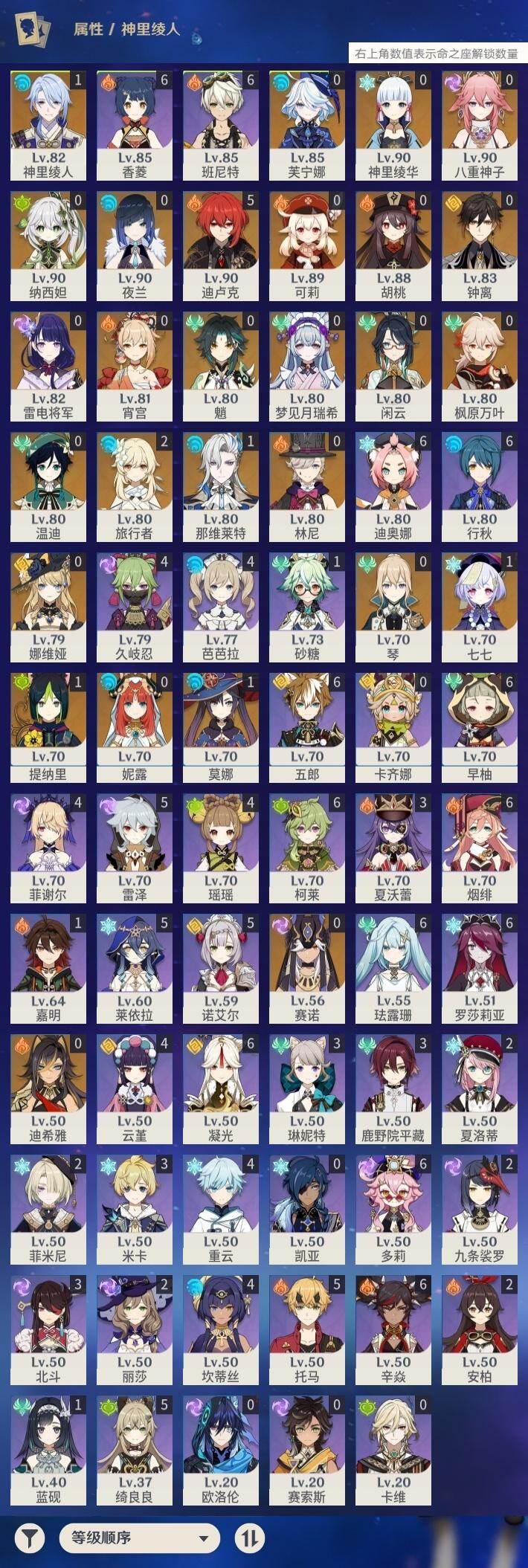 [16686911]60级/51黄/女主/27个五星角色/13个五星武器