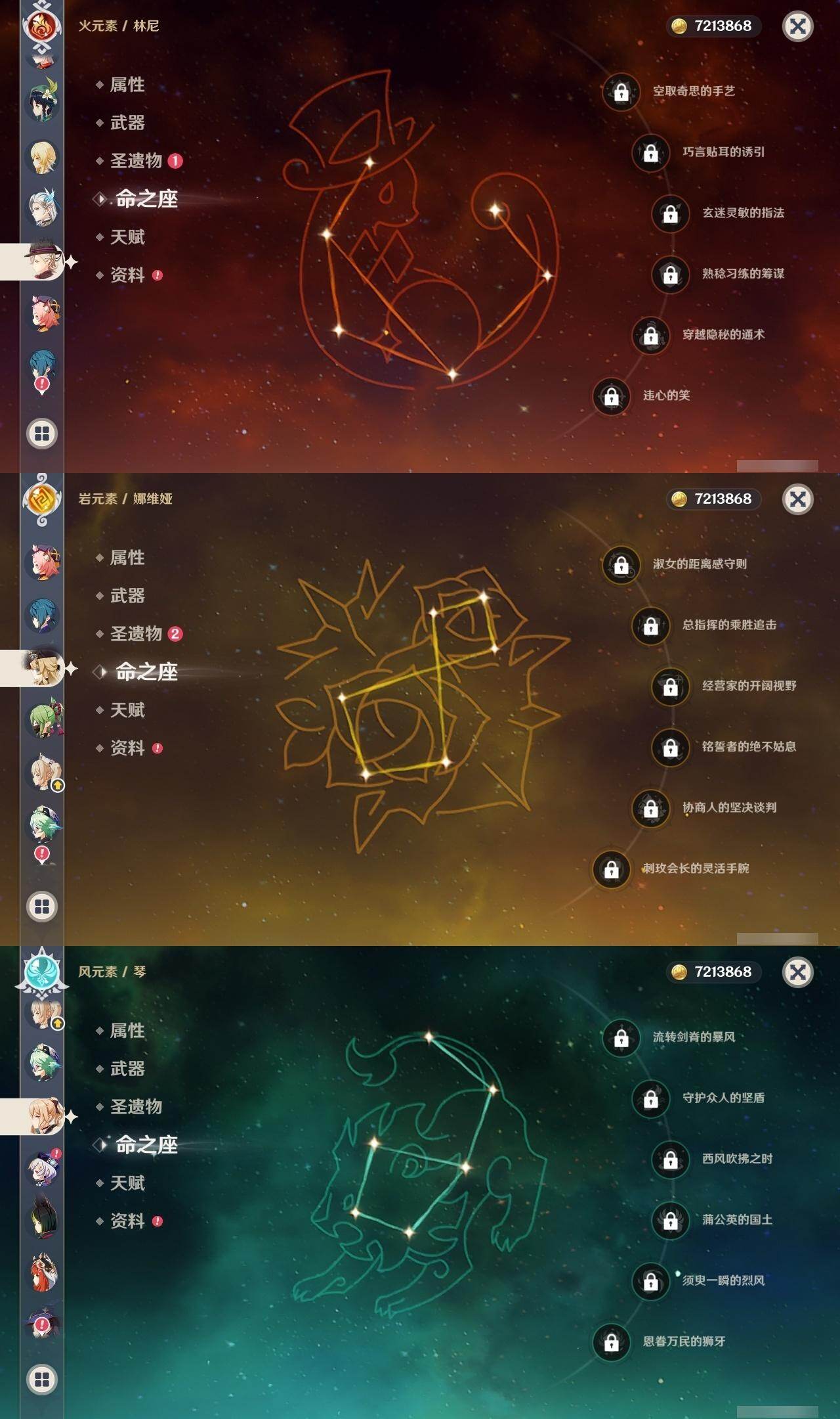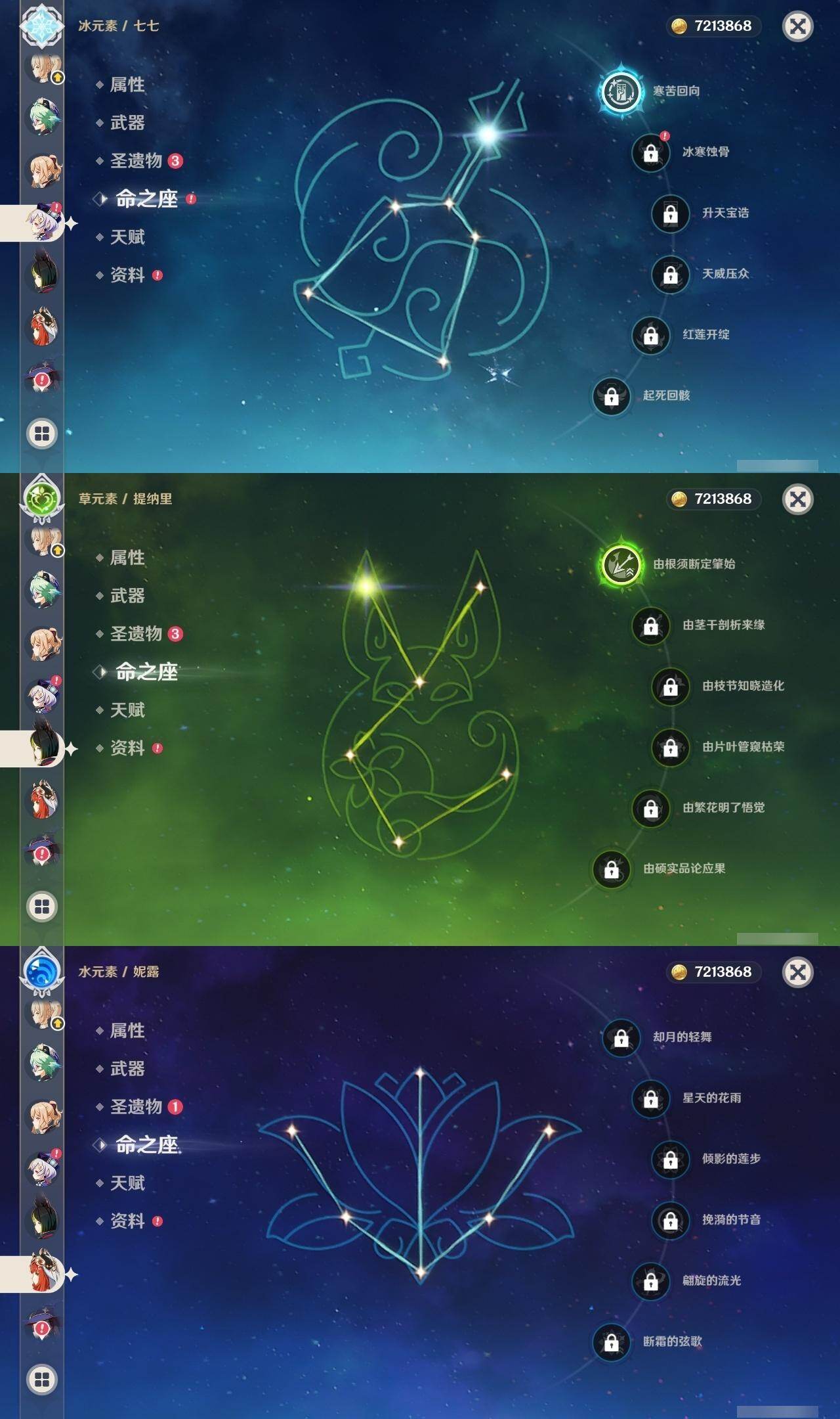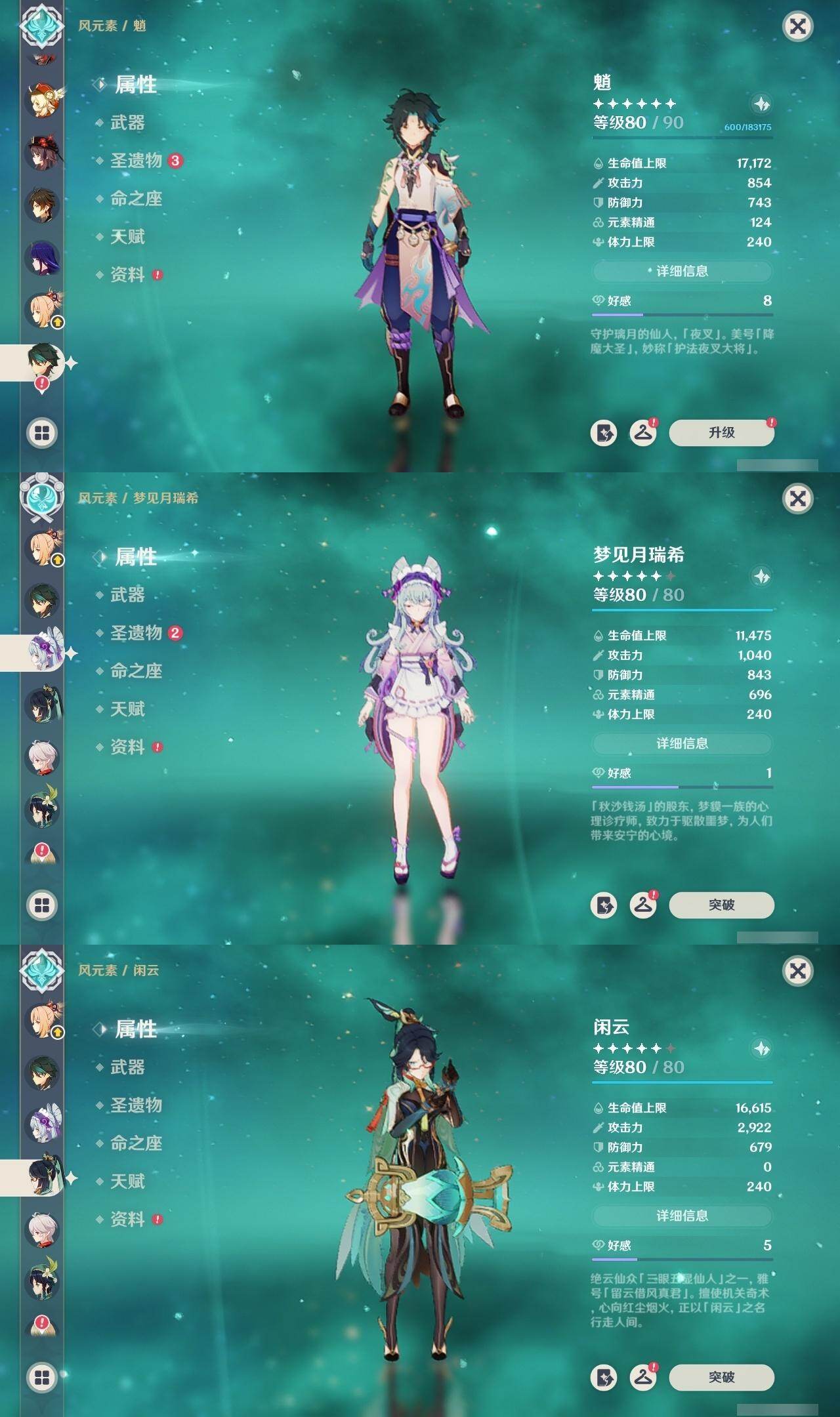 0命闲云,0命娜维娅,0命芙宁娜,1命那维莱特,0命林尼,0命迪希雅,0命纳西妲,0命妮露,0命赛诺,1命提纳里,0命夜兰,1命神里绫人,0命八重神子,0命雷电将军,0命枫原万叶,0命神里绫华,0命钟离,0命胡桃,0命魈,0命宵宫,0命温迪,0命可莉,1命七七,0命琴,1命莫娜,5命迪卢克,0命梦见月瑞希,精1万世流涌大典,精1赤沙之杖,精1若水,精1波乱月白经津,精1无工之剑,精1四风原典,精1天空之翼,精1阿莫斯之弓,精1天空之刃,精1天空之卷,精2狼的末路,精1天空之傲