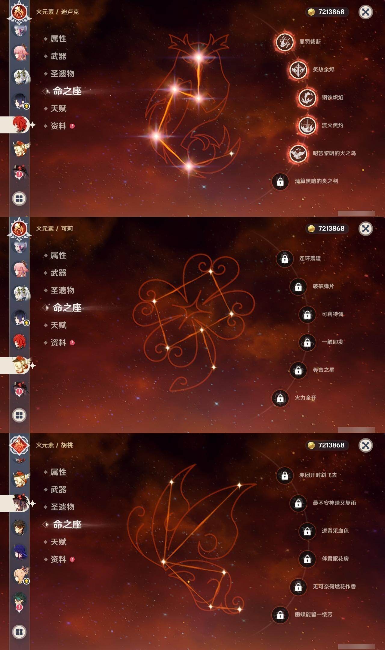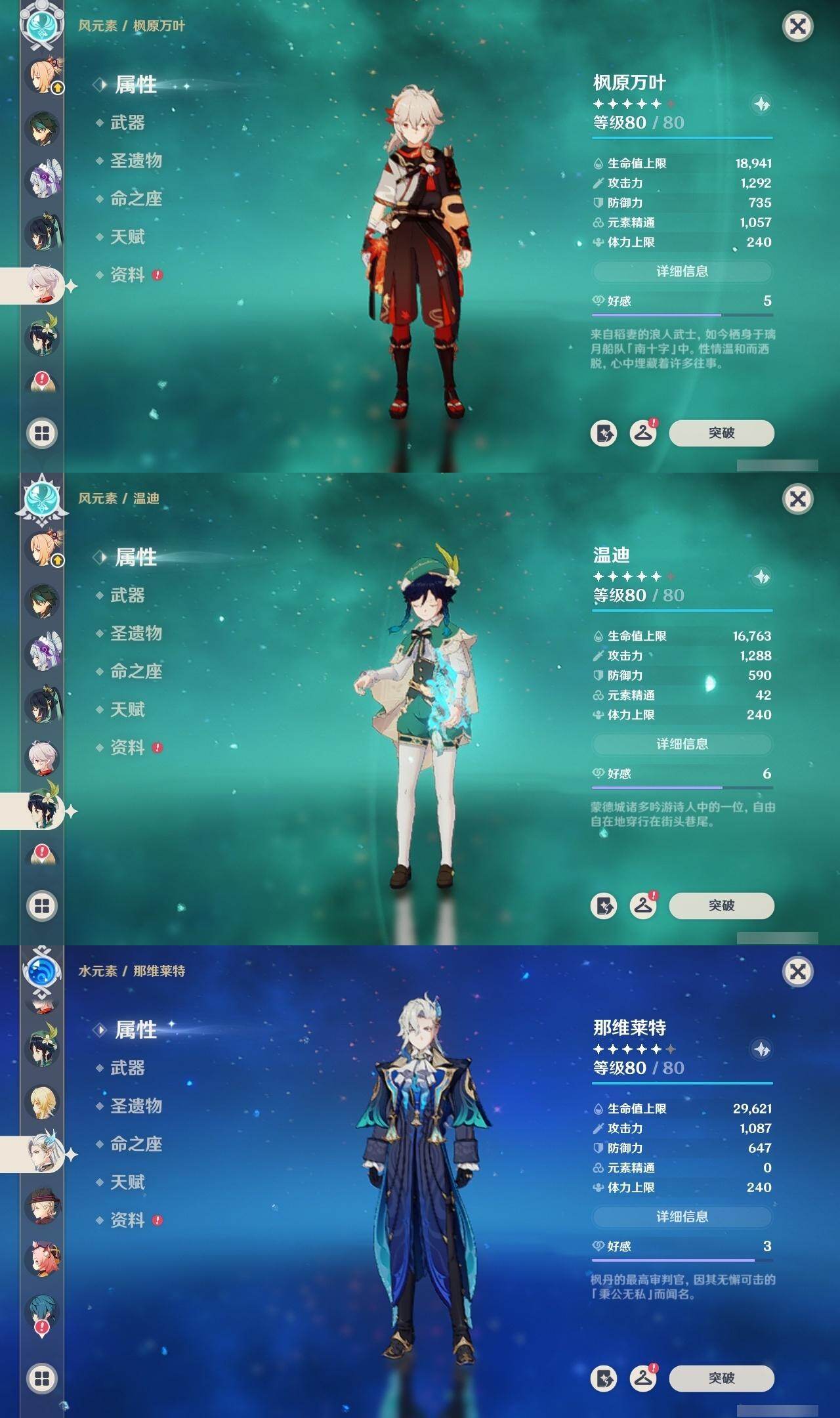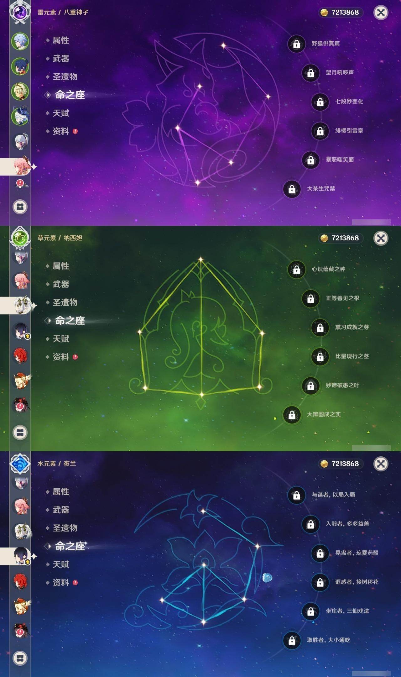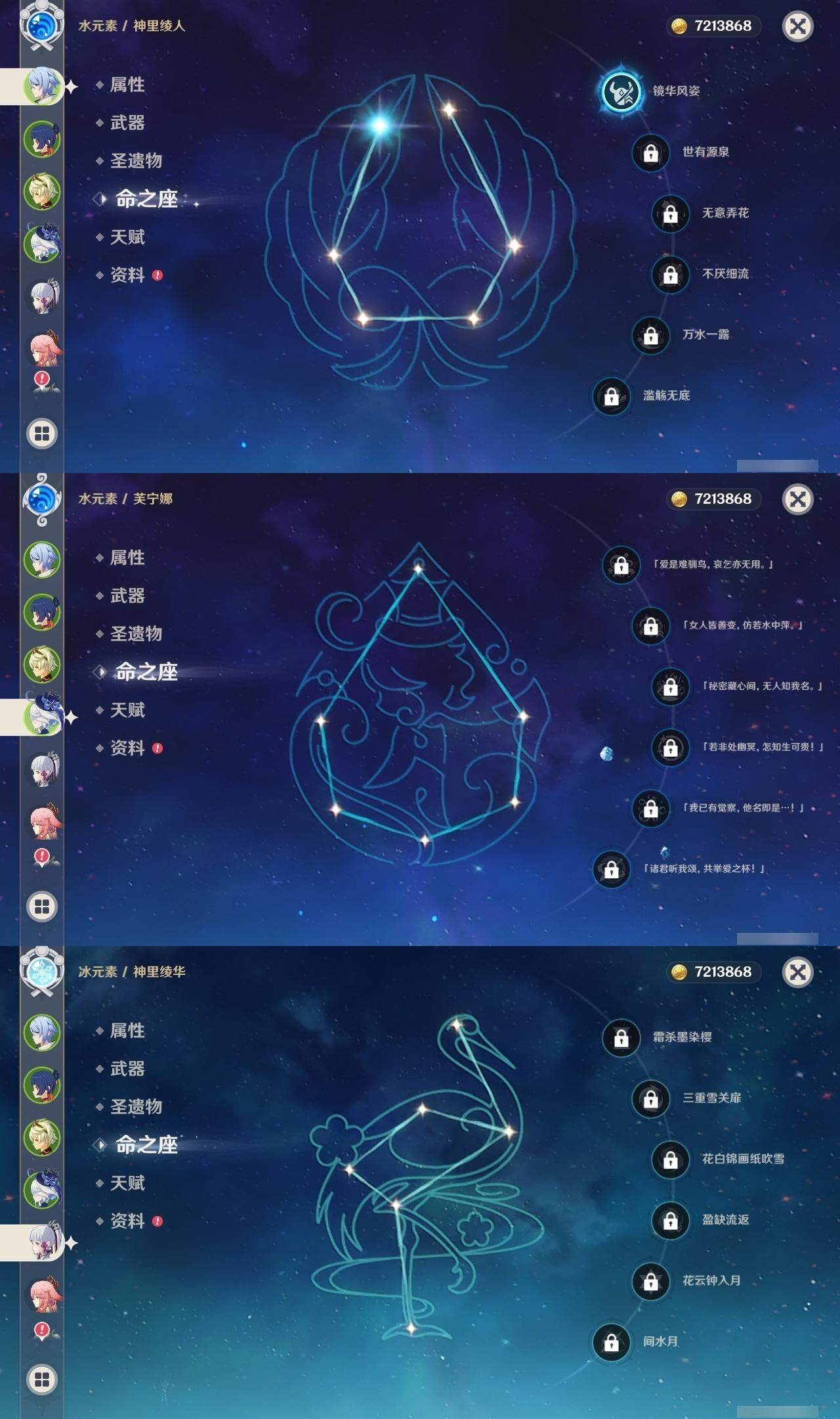 0命闲云,0命娜维娅,0命芙宁娜,1命那维莱特,0命林尼,0命迪希雅,0命纳西妲,0命妮露,0命赛诺,1命提纳里,0命夜兰,1命神里绫人,0命八重神子,0命雷电将军,0命枫原万叶,0命神里绫华,0命钟离,0命胡桃,0命魈,0命宵宫,0命温迪,0命可莉,1命七七,0命琴,1命莫娜,5命迪卢克,0命梦见月瑞希,精1万世流涌大典,精1赤沙之杖,精1若水,精1波乱月白经津,精1无工之剑,精1四风原典,精1天空之翼,精1阿莫斯之弓,精1天空之刃,精1天空之卷,精2狼的末路,精1天空之傲