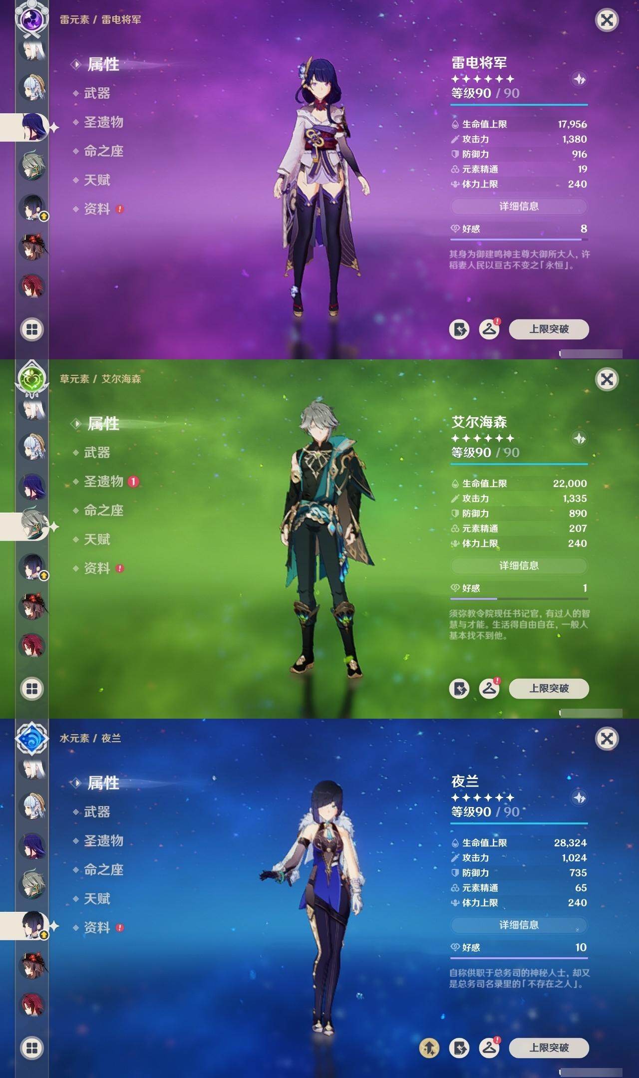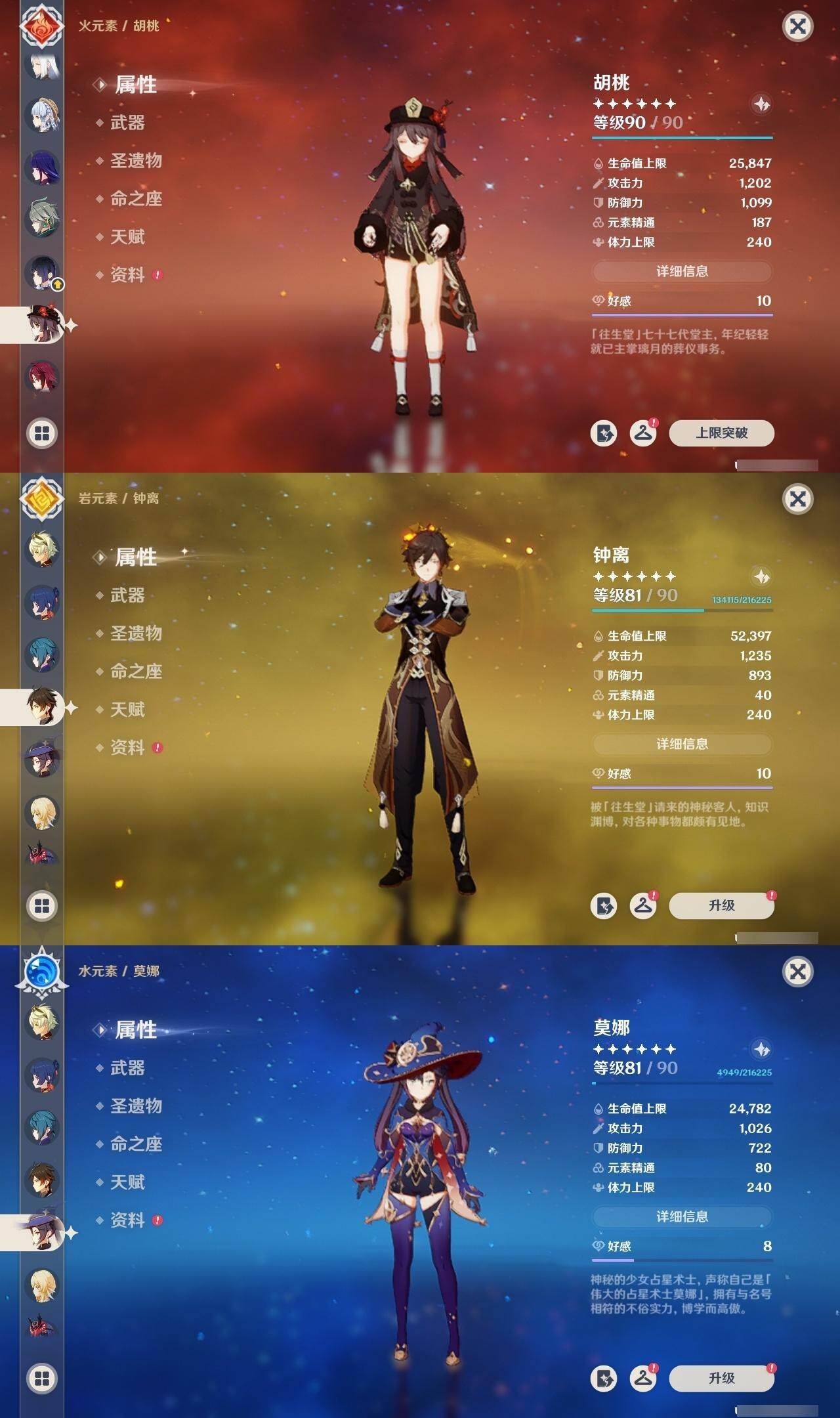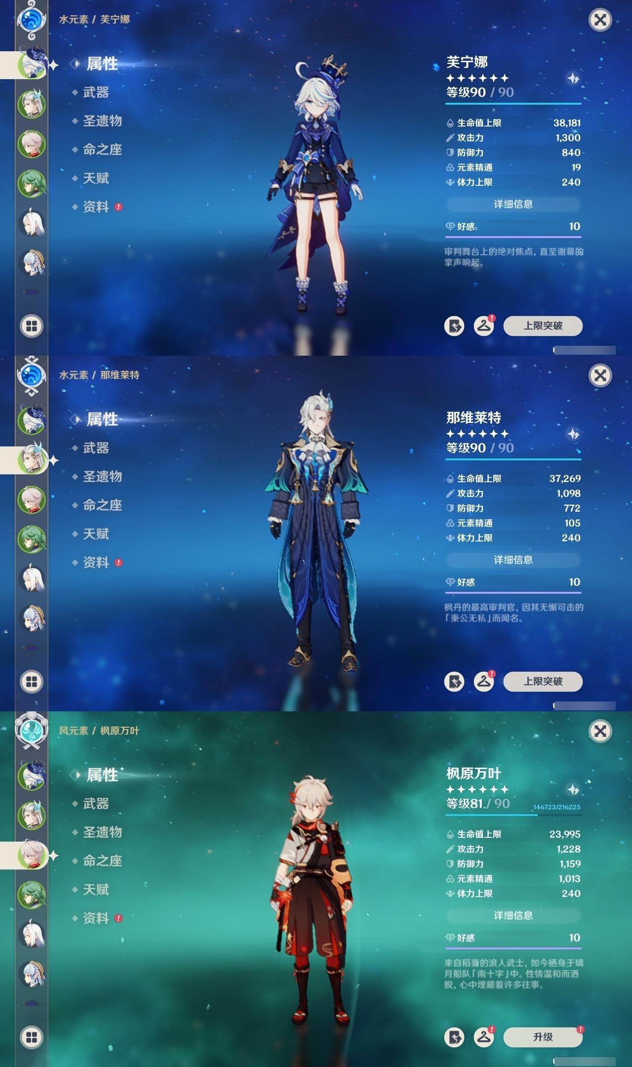 枫原万叶,申鹤,神里凌华,雷电将军,胡桃,钟离,莫娜,刻晴,琴,七七