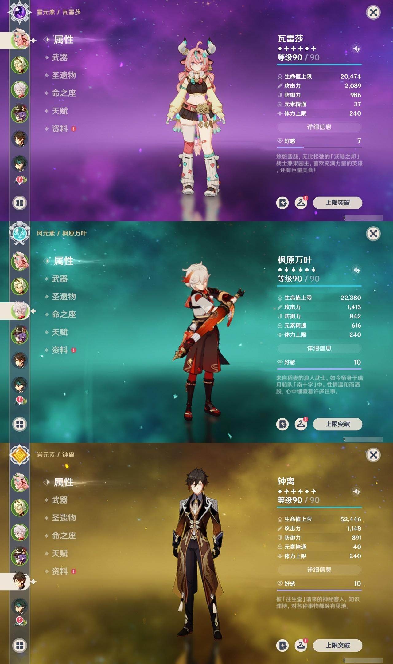 枫原万叶,钟离,魈,温迪,申鹤,甘雨,神里凌华,雷电将军,胡桃,八重神子,莫娜,迪卢克,琴,七七,刻晴