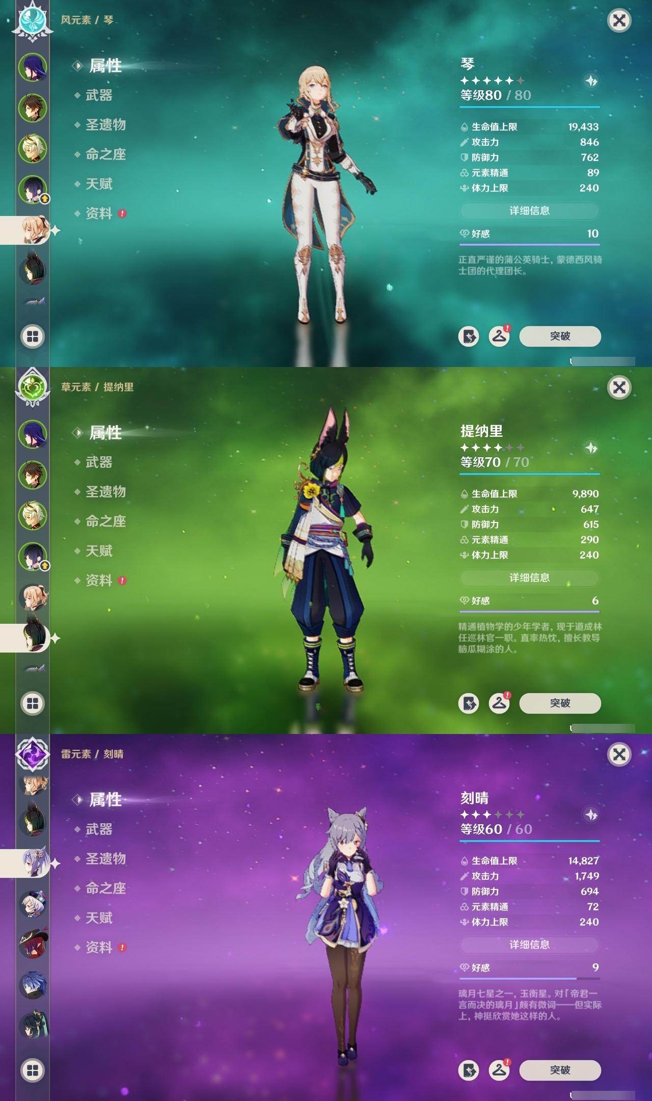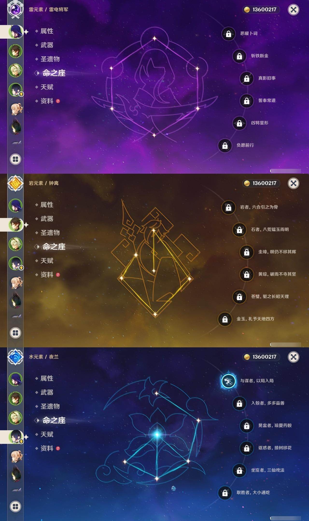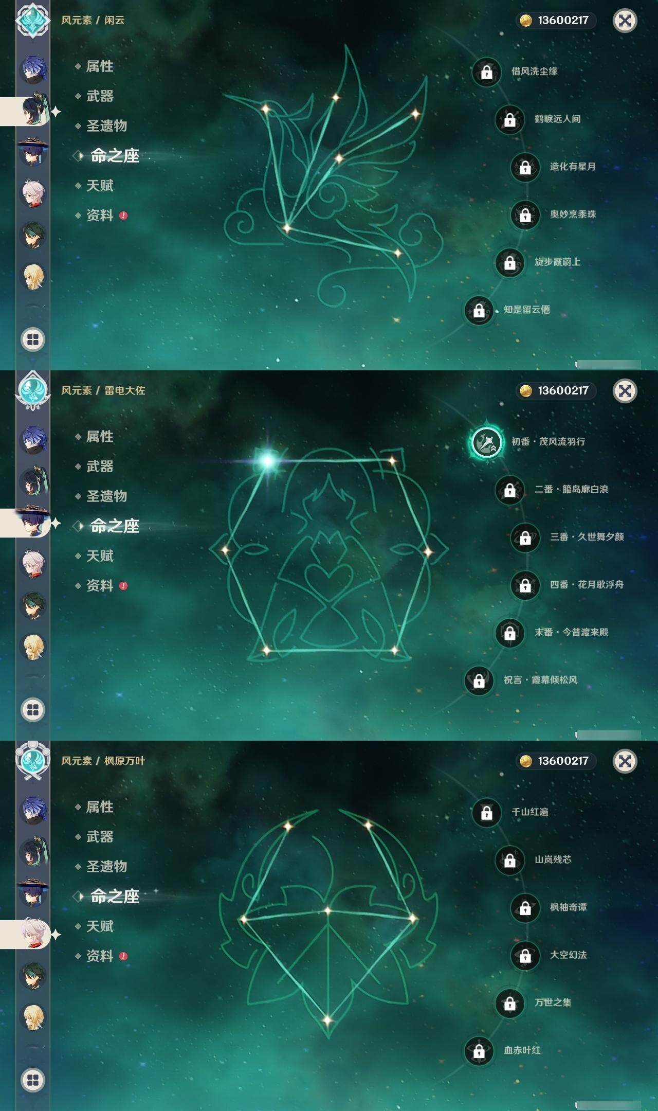 0命闲云,0命芙宁娜,1命流浪者,0命纳西妲,0命妮露,0命提纳里,1命夜兰,0命八重神子,0命优菈,0命雷电将军,0命枫原万叶,0命神里绫华,0命钟离,0命魈,0命宵宫,0命刻晴,1命七七,3命琴,2命莫娜,4命迪卢克,0命恰斯卡,0命菲林斯,精1静水流涌之辉,精1图莱杜拉的回忆,精1圣显之钥,精1若水,精1薙草之稻光,精1四风原典,精1和璞鸢,精1阿莫斯之弓,精1天空之卷,精1狼的末路
