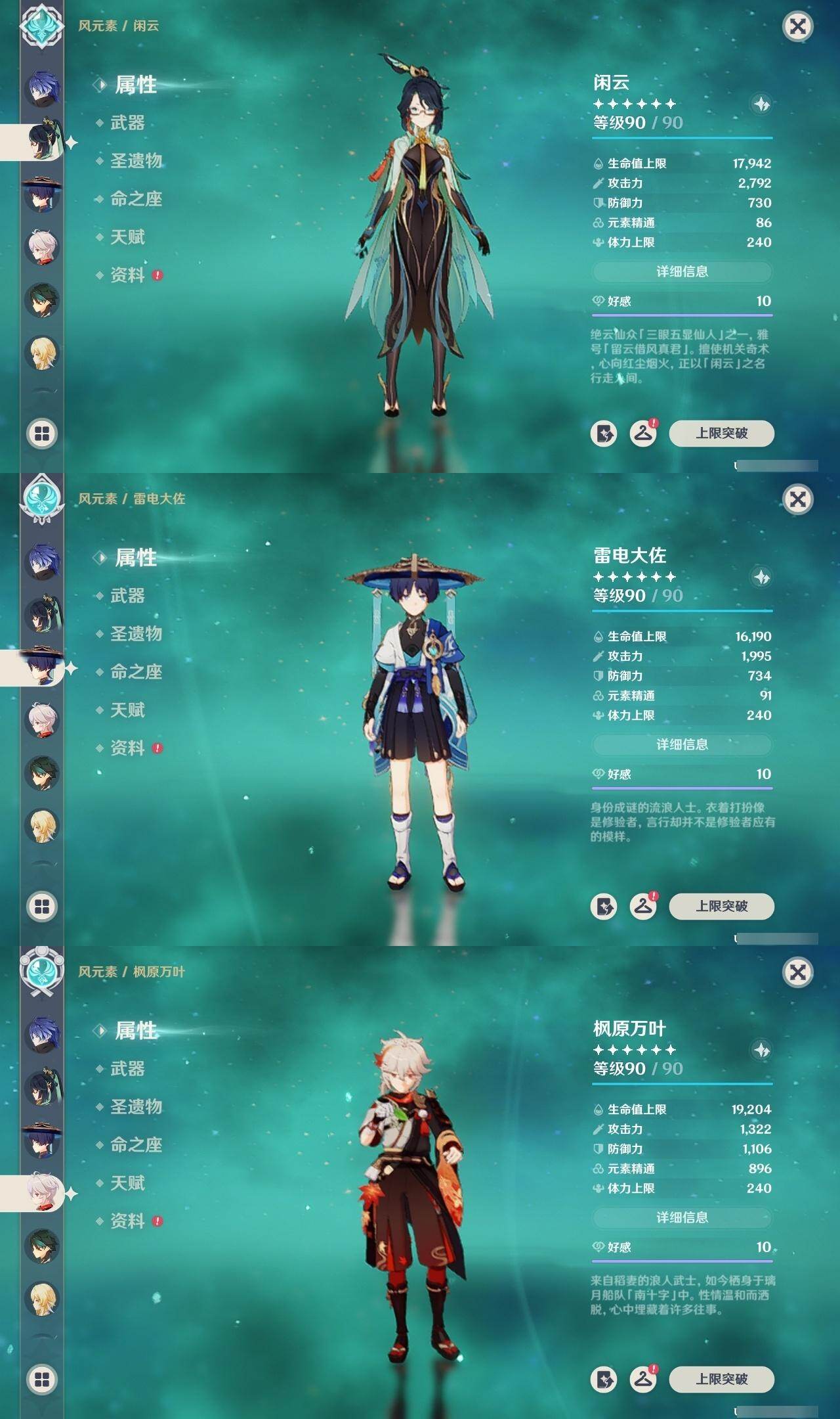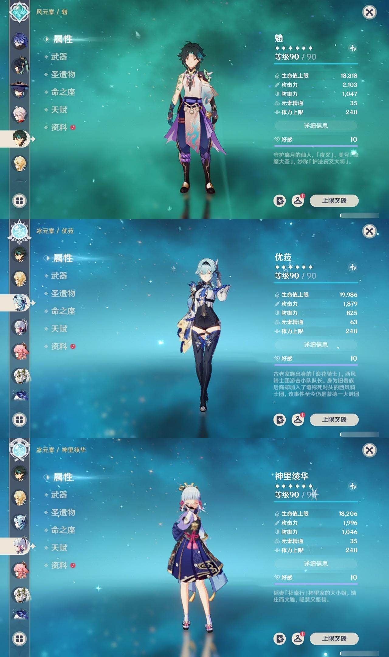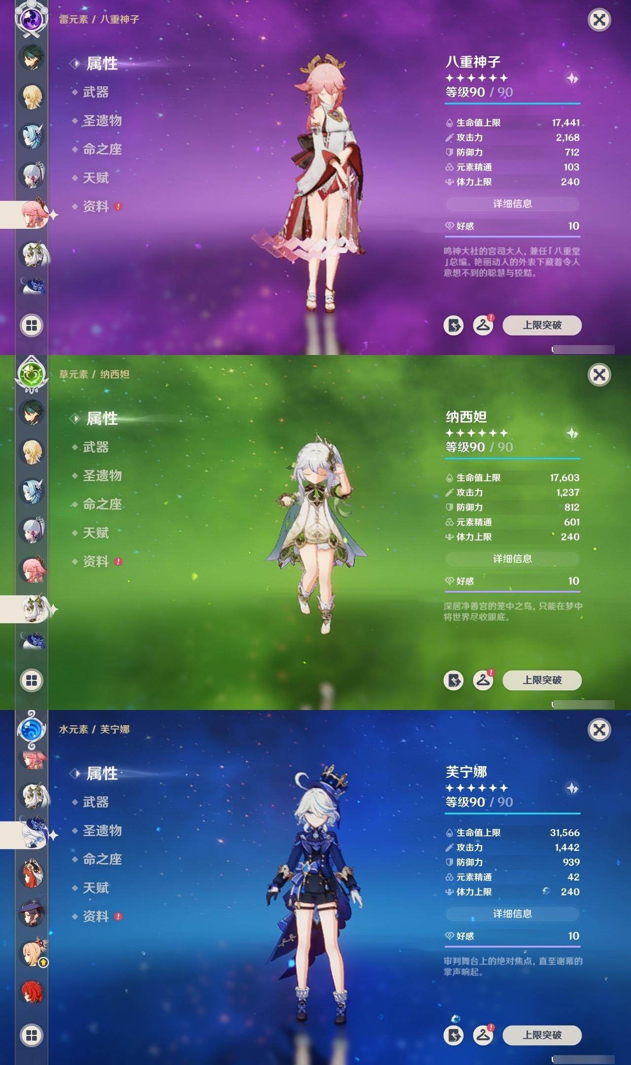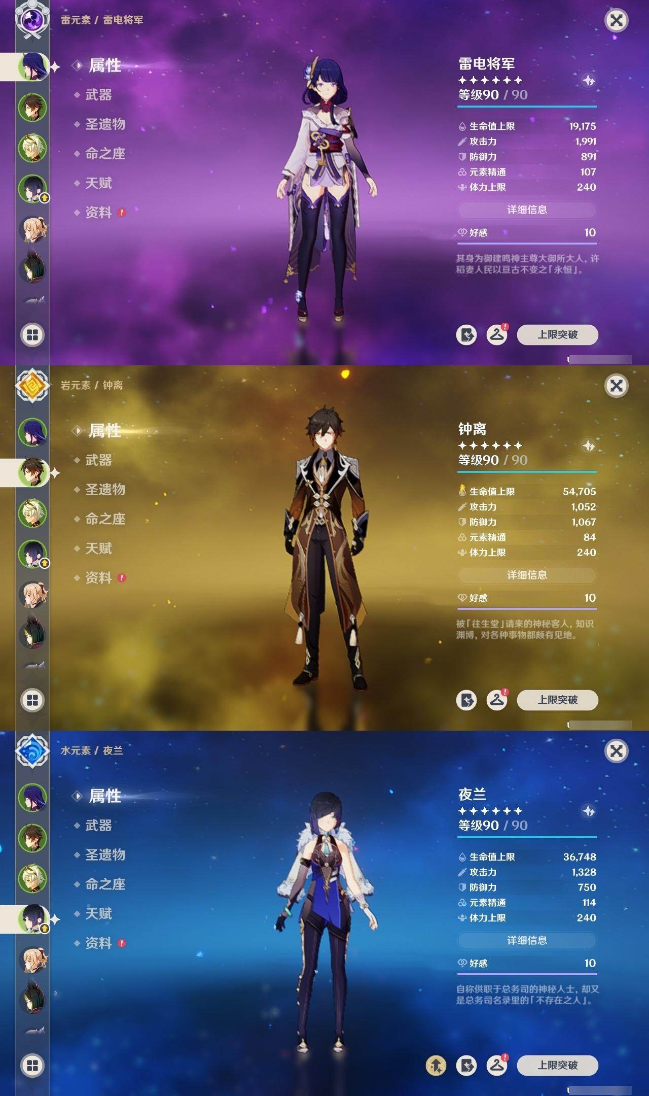 雷电将军,钟离,琴,刻晴,七七,枫原万叶,魈,优菈,神里凌华,八重神子,莫娜,宵宫,迪卢克