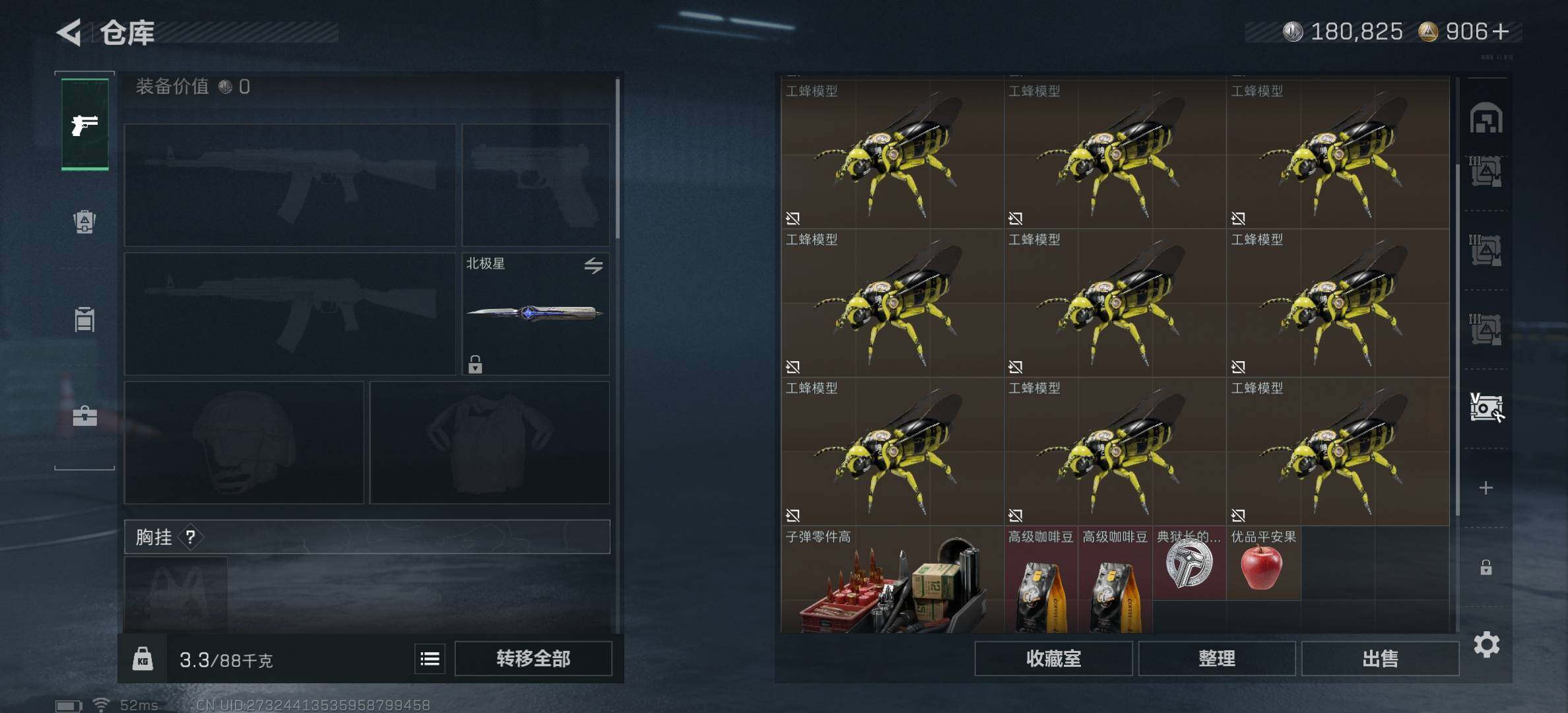- [11550225]5粉装 9特效枪 1载具 27印记 可二次 可修改实名 身法装备:LGD追光队服,零号机款机体服(黄螳螂),萌熊伴侣背包(粉熊背包) 优质装备:零号机款机体服(黄螳螂),兰博基尼Estoque(银翼灰),九级M416-至情至圣(满级至情至圣M416),萌熊伴侣背包(粉熊背包),UMP45雪国精灵,M416五爪金龙,SCAR-L梦幻火箭,梦幻火箭(新101)(新火箭少女101粉色套装),数码大师,智能音符,AKM梦之光华,SCAR-L青春物语,M416至情至圣,AKM星际浪客,千金淑猫,Kar98K-巳巳如意 热门装扮:动感兔斯基,鹰眼刺客,东方飞龙 稀有枪皮:DP-28-豹影疾电 六级特效枪:六级SCAR-L-梦幻火箭 五级特效枪:五级UMP45-雪国精灵,五级Kar98K-巳巳如意,五级AKM-梦之光华 四级特效枪:四级DP-28-豹影疾电 一级特效枪:一级M416-五爪金龙,一级SCAR-L-青春物语,一级AKM-星际浪客 紫色装扮:田园牧歌,轻风白浪,SS22特训,SS23特训,幻彩翩翩,妙红点点,摩登艾咪,娇憨猪猪,萌趣咩咩,SS21特训,SS31特训套装,SS4特训,SS5特训,冰川特警,北国孤狼,SS30特训套装,SS33特训套装,SS20特训,青春冒险家,潮流游乐家,SS15特训,SS16特训,冰爽风暴,爆裂葡萄,银白舞王,SS13特训,治愈之星,迅捷之星,科技之星,SS14特训,萌趣颜团子,特种颜团子,零款战斗服,飞驰魅影,音速流光,极速竞梦,SS19特训,军刀雅典娜,吉莉礼服,甜心亚梦,虚音幻奏,雪兔飞飞,真理款战斗服,瑞龙福将,团圆交子,SS17特训,糖果砰砰,异彩先驱,缤纷焰火,SS18特训,都市魅力,酷潮明星,长空猛禽,雪山精英,霓虹极客,霓虹街区,缤纷果语,蓝彩潮人,蓝色守护者,蓝色运动,跃动心情,飞行日记,骑行爱好者,魅力单车,麻辣教官,黄色伏地魔,黎明保卫者,龟仙人,龙魂突击队,和平特警,柠萌假日,格斗先锋,深蓝色名流,幻影武者,坚韧舞者,夏日倾情,幻世战舞者,怒火燎原,湖蓝色名流,绮丽涂鸦,电音之王,疯狂小兔子,白色伏地魔,福星高照,空投萌叽,竞技勇士朋克,牛气冲天,潮流炫酷,炫蓝之夏,热血青春,牛气满满,特战装甲,狂战萌兔,狂沙舞者,猎鹰,镭射皇者,李逍遥,鱼渊荷华,燕燕于飞,竞技名士,LGD追光队服,惊鸿侠骨,锦衣飞扬,Ala