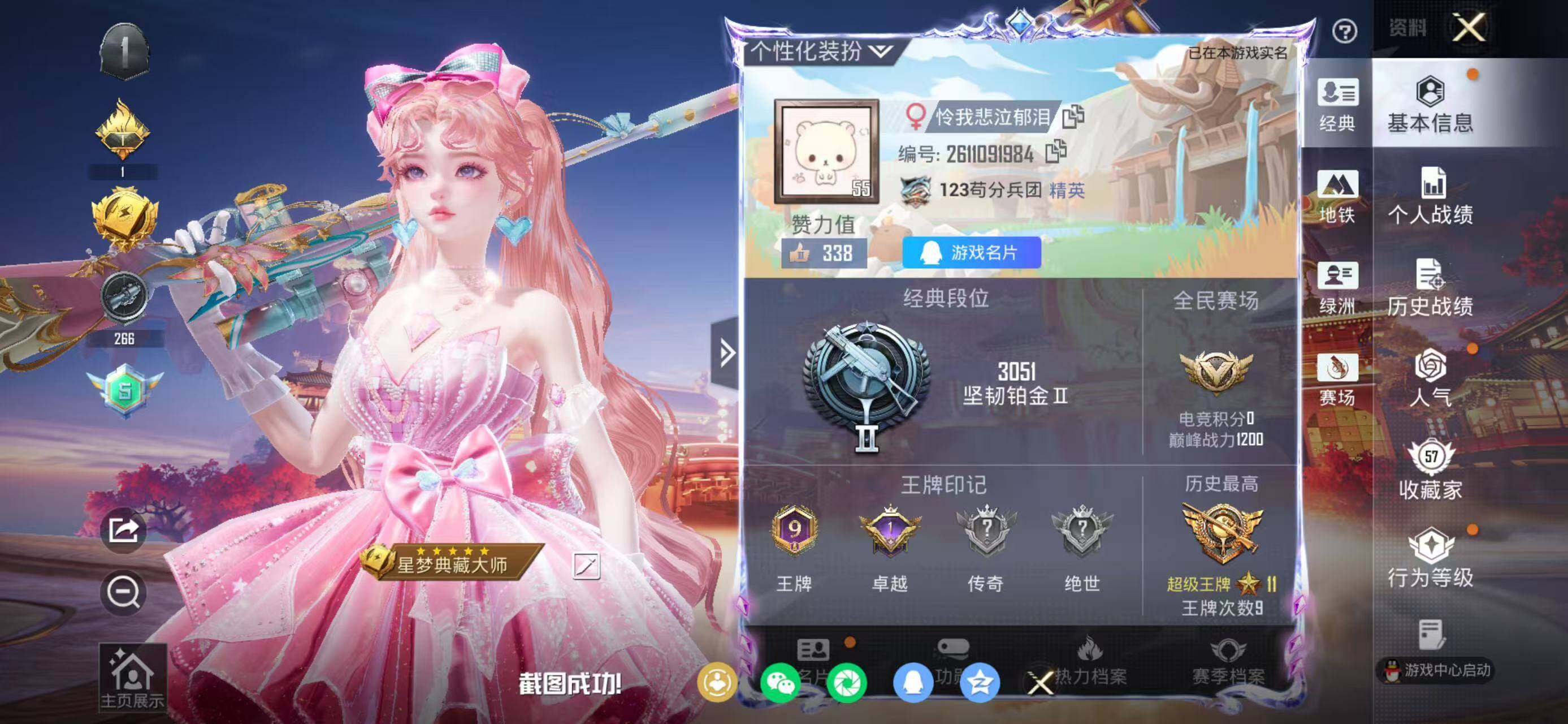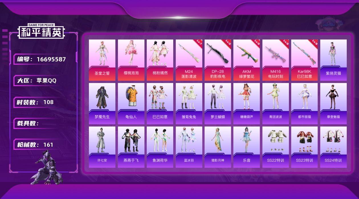 [16695587]有二次【特价出售/店主推荐】苹果 手Q-3粉装-5特效枪-0载具-4粉色飞行器-50387热力值-9王牌印记-108套装-161枪皮