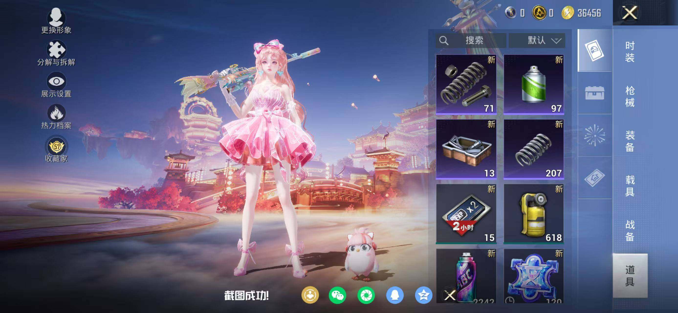 - [14740989]可二次【店主推荐捡漏号!可直接换绑】 安卓 手Q-1粉装-1特效枪-4粉色飞行器-2.8w热力值-5王牌印记-62套装-90枪皮【热门品类】:粉装-梦幻火箭,套装-龟仙人,角色-Mark.06【粉色套装】:粉装-梦幻火箭【粉色枪皮等级】:M416-电玩时刻(五级)【粉色飞行器】:梦幻火箭飞行器,太空嘟嘟飞行器,极意拳锋飞行器