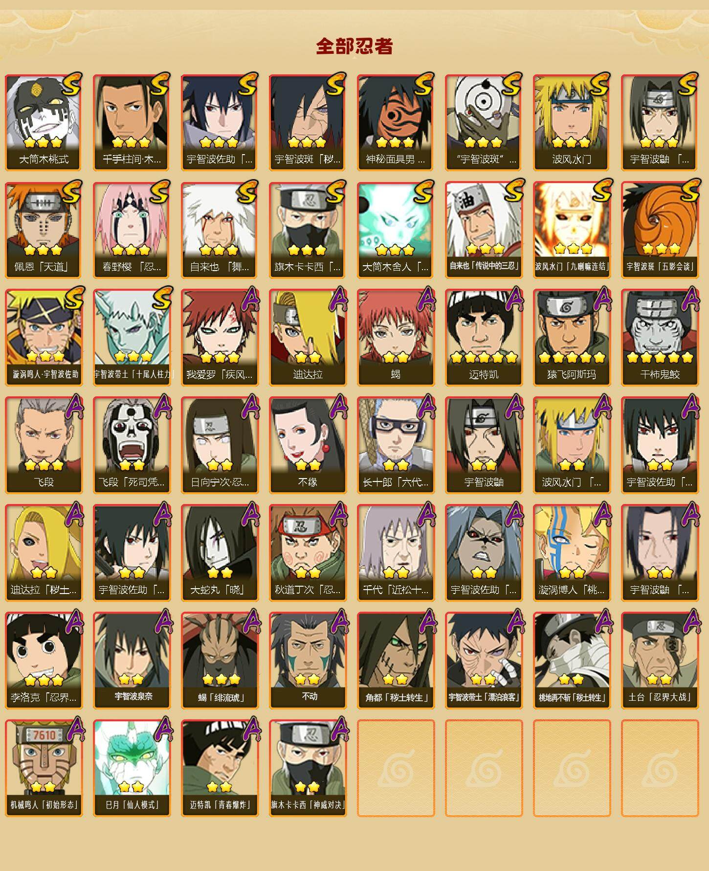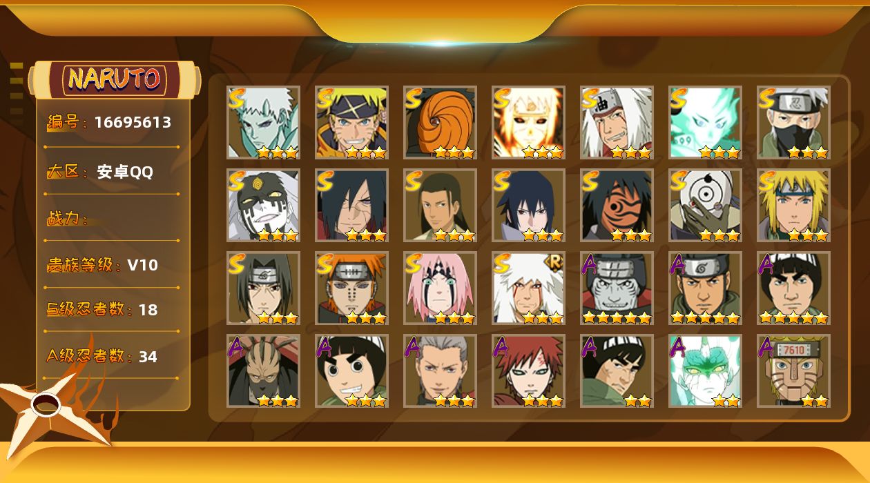 - [11322499]V6 9S忍 17A忍 13通灵 448.5W战力 可二次 可修改实名 优质装备:宇智波带土 「忍界大战」,宇智波佐助「永恒万花筒」,千手柱间·木叶创立,宇智波斑「秽土转生·解」,艾「忍界大战」 S级忍者:自来也 「舞之豪杰」,宇智波鼬 「须佐能乎」,佩恩「天道」,波风水门