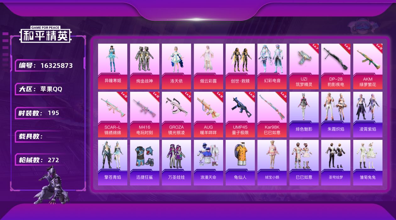[16325873]【特价出售/店主推荐】苹果 手Q-7粉装-9特效枪-0载具-6粉色飞行器-90118热力值-18王牌印记-195套装-272枪皮【热门品类】:套装-浪漫天命,套装-龟仙人【粉色套装】:粉装-绚金战神,角色-洛天依,角色-烟云彩露,套装-创世·救赎,粉装-幻彩电音,角色-异瞳寒姬【粉色枪皮等级】:AKM-绿萝繁花(五级),SCAR-L-锦绣绵绵(五级),M416-电玩时刻(五级),GROZA-镜光银凌(五级),AUG-暖羊咩咩(五级),UZI-筑梦精灵(七级),UMP45-量子极限(五级),Kar98K-巳巳如意(五级),DP-28-豹影疾电(五级)【粉色枪皮】:AKM-绿萝繁花,SCAR-L-锦绣绵绵,M416-电玩时刻,GROZA-镜光银凌,AUG-暖羊咩咩,UZI-筑梦精灵,UMP45-量子极限,Kar98K-巳巳如意,DP-28-豹影疾电【粉色飞行器】:萌物绒绒飞行器,冠军兔兔飞行器,御兔特攻飞行器,幻星舰长飞行器,时光之吻飞行器