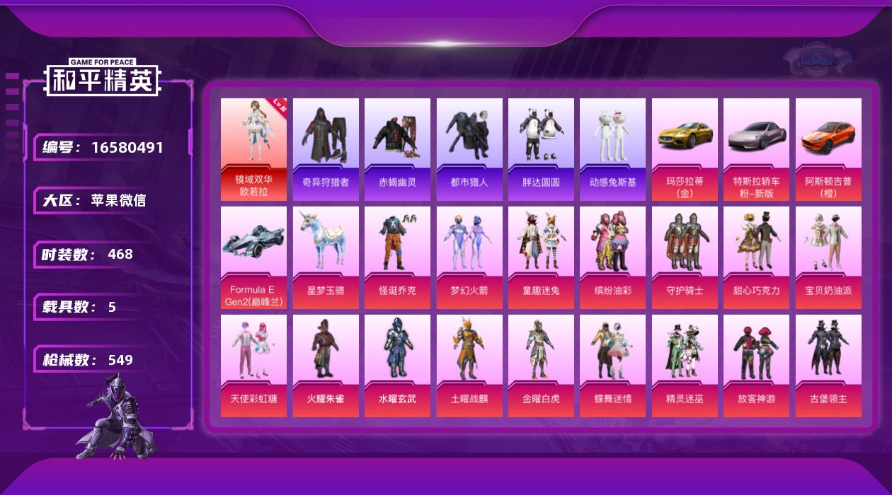 [16580491]6级欧若拉【特价出售/店主推荐】苹果 微信-无敌战神框-1神装-72粉装-25特效枪-5载具-14粉色飞行器-23·5w热力值-29王牌印记-468套装-549枪皮