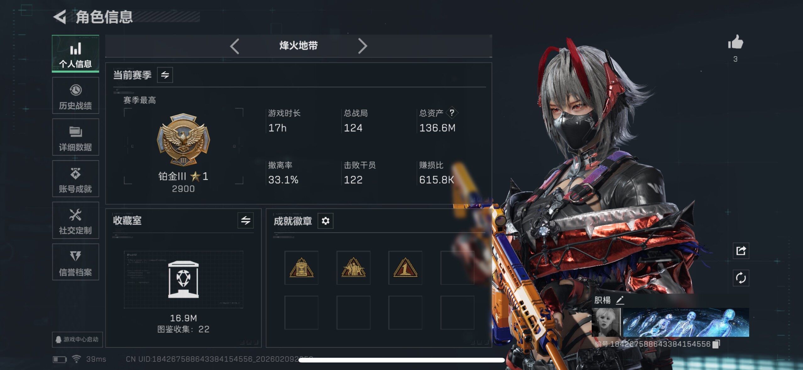 [16667642]【特价出售/店主推荐】136m总资产-47412k哈伏币-60烽火等级-铂金-23战场等级-列兵