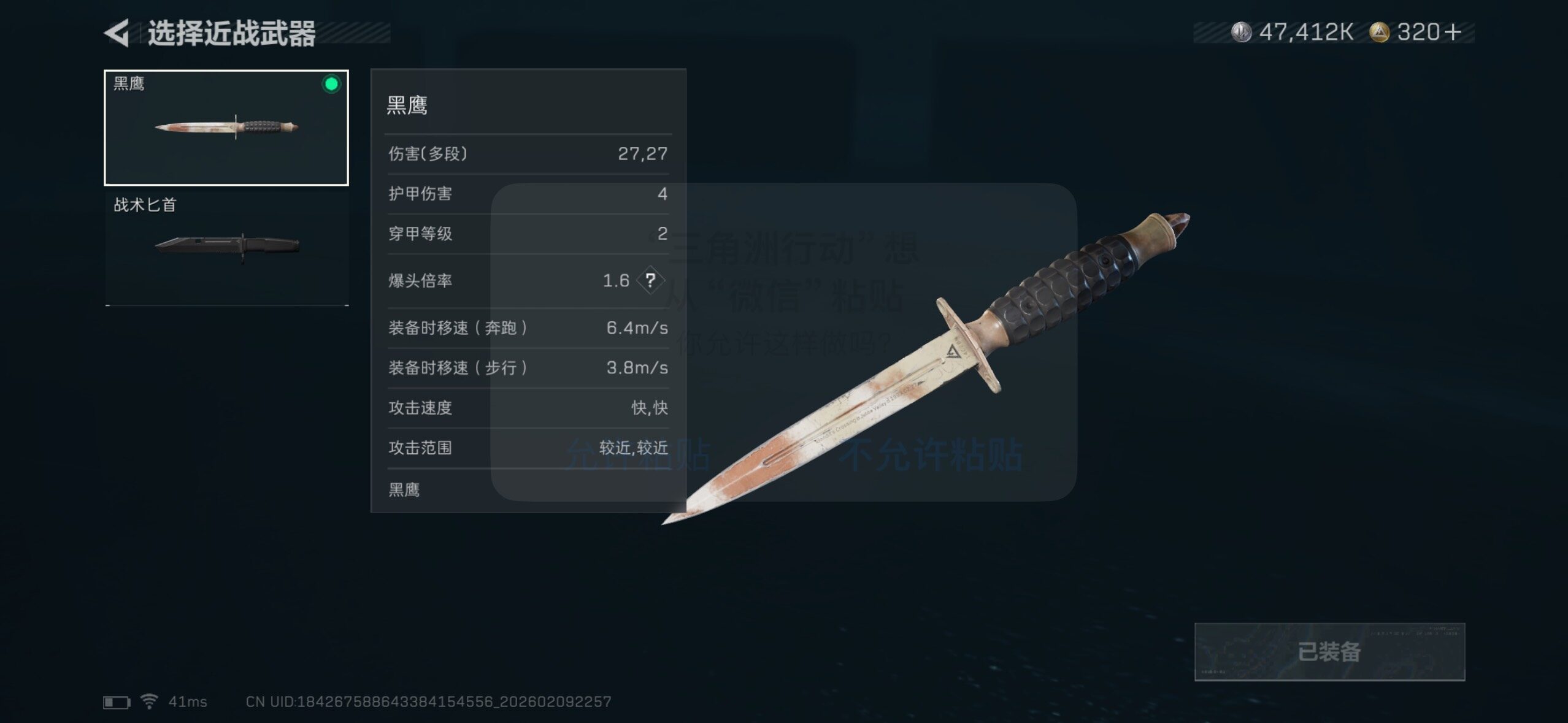 【近战皮肤】:近战-黑鹰