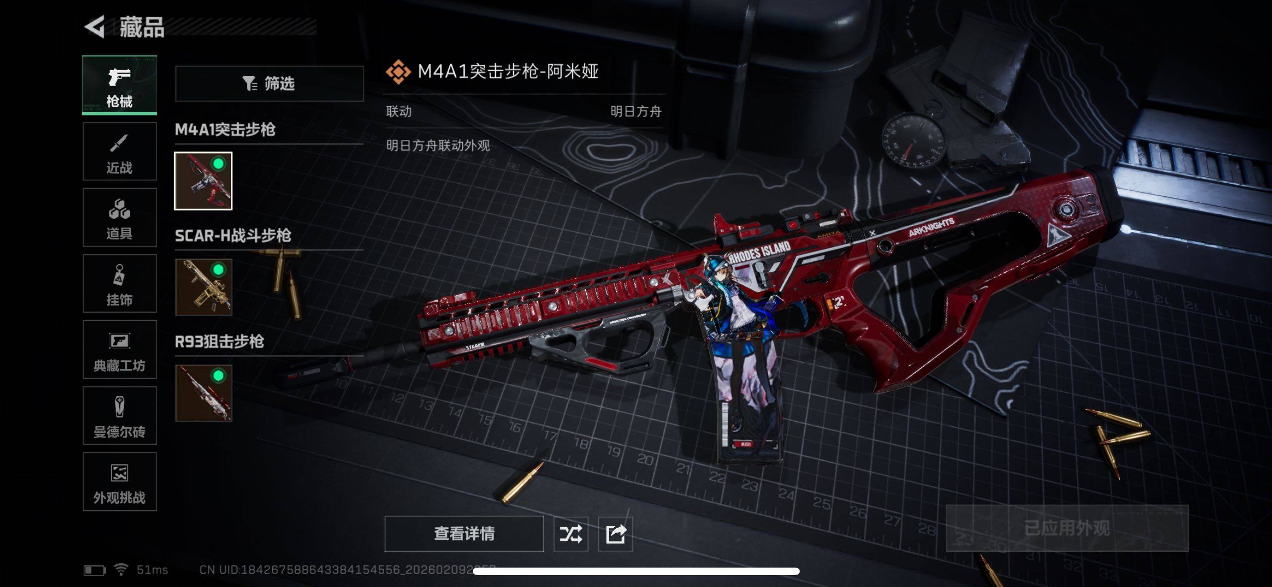 【传说外观】:M4A1突击步枪-阿米娅,SCAR-H战斗步枪-启航,R93狙击步枪-维什戴尔