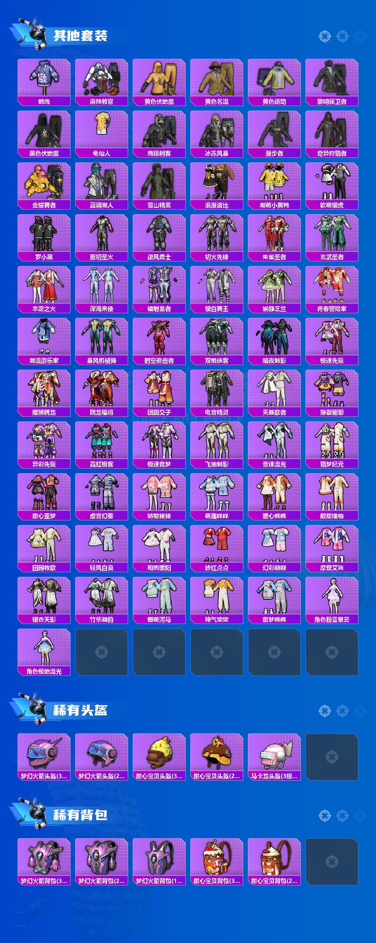 套装-梦幻火箭,套装-奇异狩猎者,套装-潮萌小黄鸭,套装-浪漫波比,套装-宝贝奶油派,套装-天使彩虹糖,套装-蝶舞迷情,套装-极致幻想,套装-甜梦冰蝶,套装-俏雪含霜,套装-吟月归客,套装-幻情紫藤,套装-薄荷物语,套装-冰川红玫,套装-鹰眼刺客,套装-软萌银虎,套装-罗小黑
