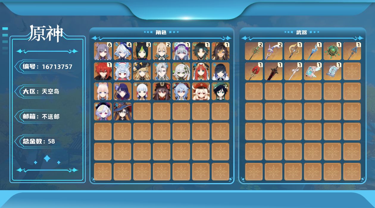 [16713757]60级/58黄/男主/24个五星角色/13个五星武器