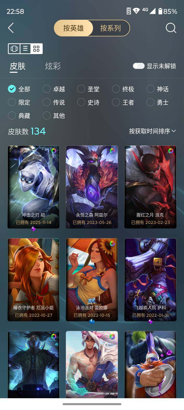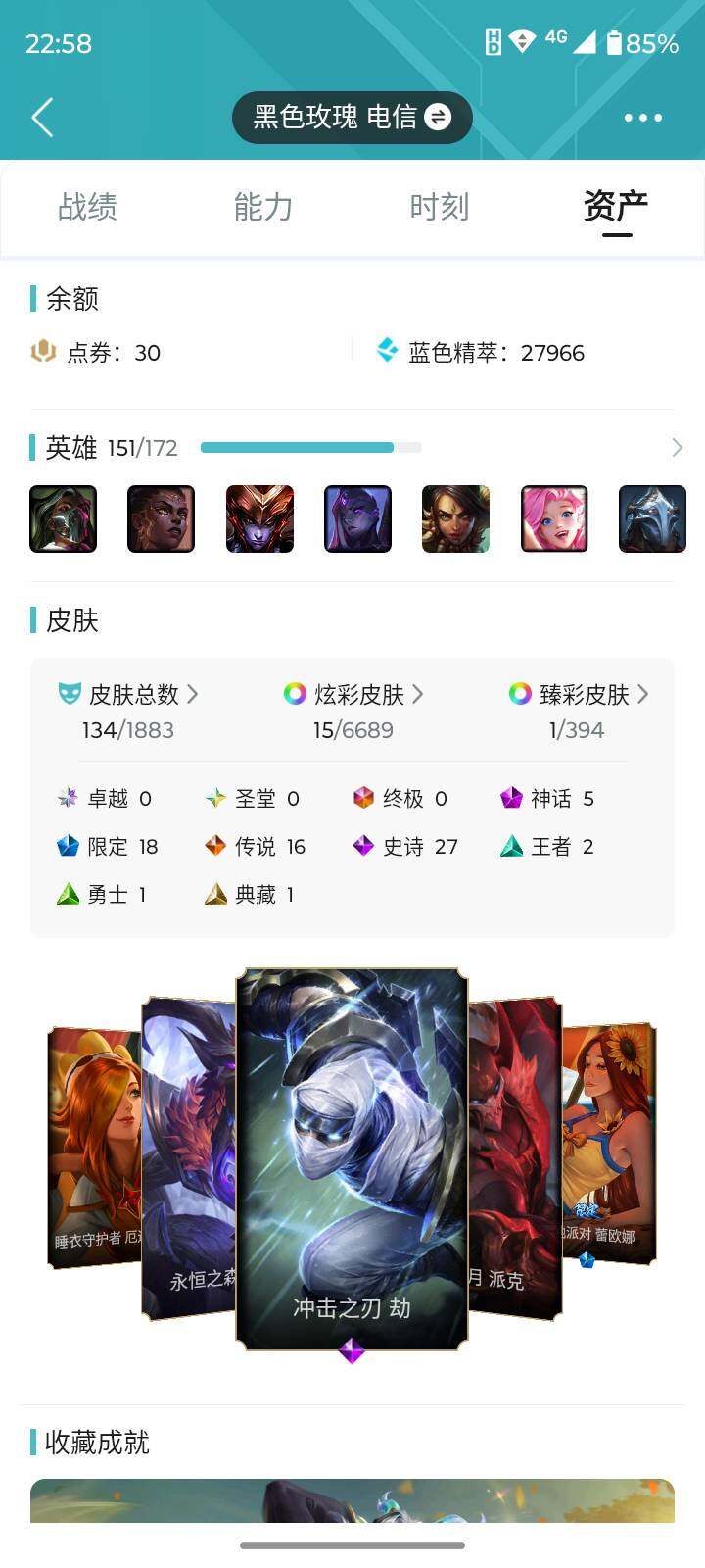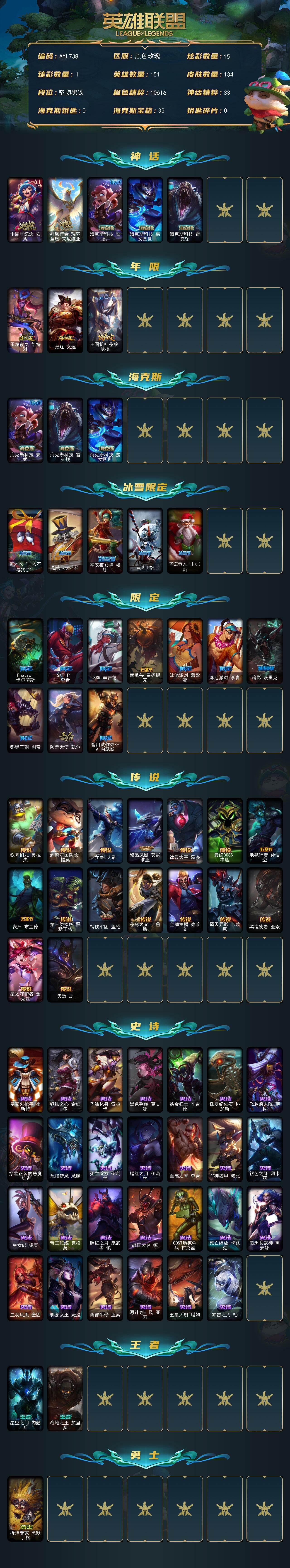 [16713768]【店主推荐捡漏号】未定级段位-151英雄-134皮肤-15炫彩-0终极-5神话-18限定-16传说-27史诗