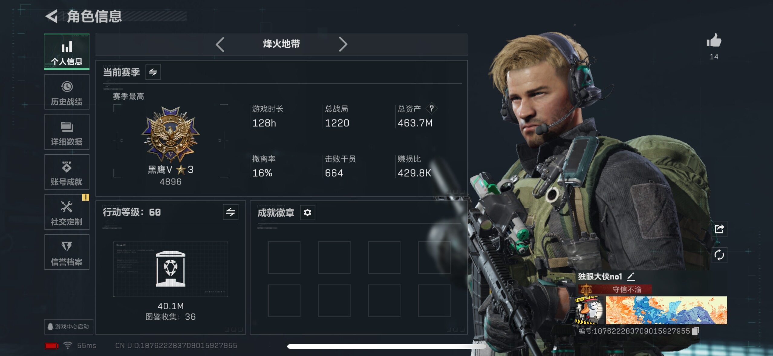 [16710848]【纯资产账号特价出售/店主推荐】463m总资产-310447k哈伏币-60烽火等级-钻石-2战场等级-无军衔