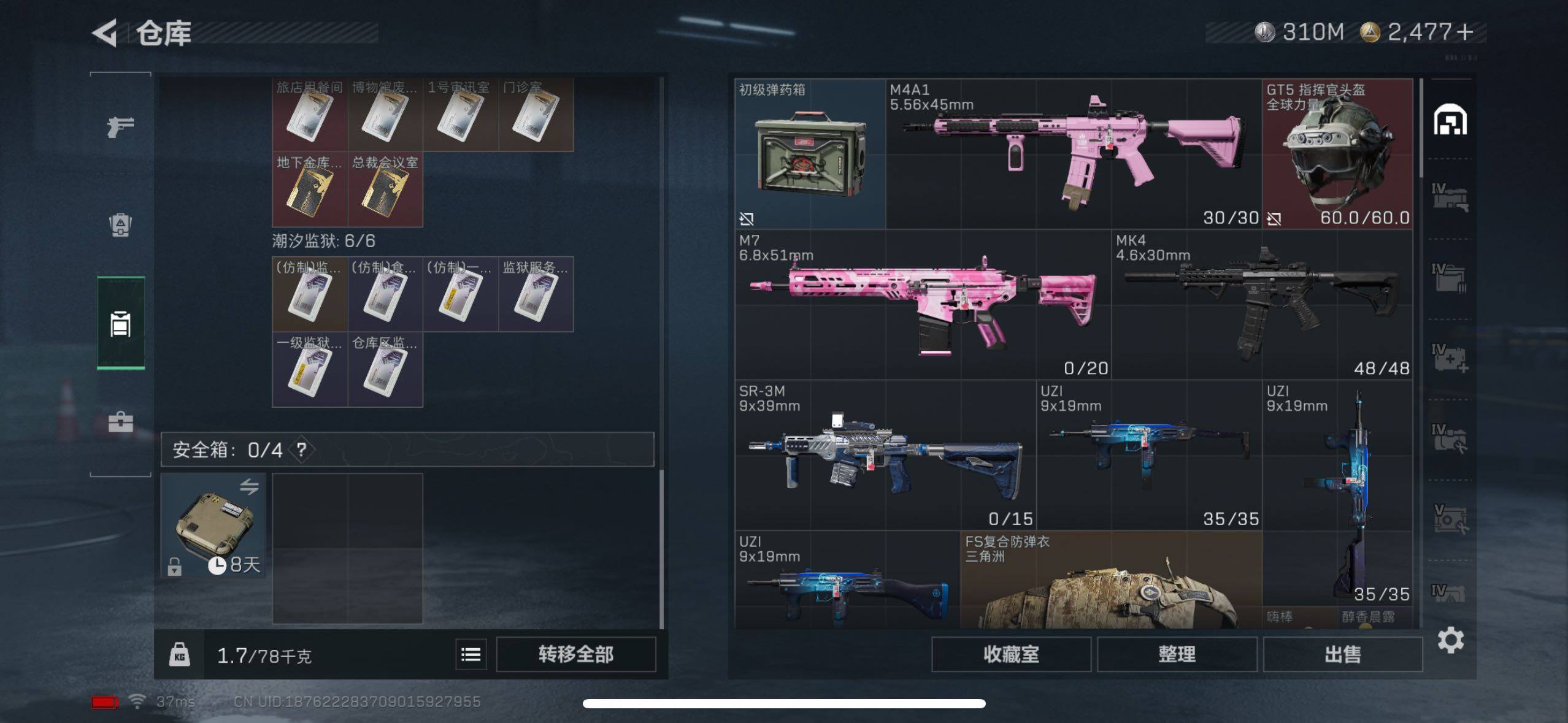 【普通外观】:.357左轮-淘金者,M14射手步枪-蛇纹涂装,M249轻机枪-蝴蝶,PKM通用机枪-黄铜,.357左轮-黄铜,G18-马赛克涂装,S12K霰弹枪-监察,R93狙击步枪-凶兽,AS Val突击步枪-猛兽,SVD狙击步枪-猛兽,PTR-32突击步枪-噬菌体,M4A1突击步枪-粉色涂装,M4A1突击步枪-高雅黑,M4A1突击步枪