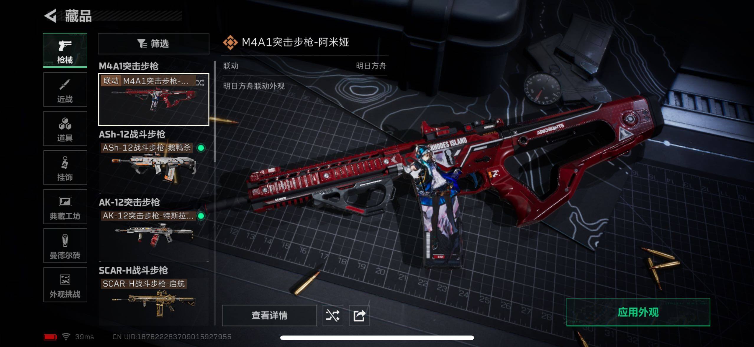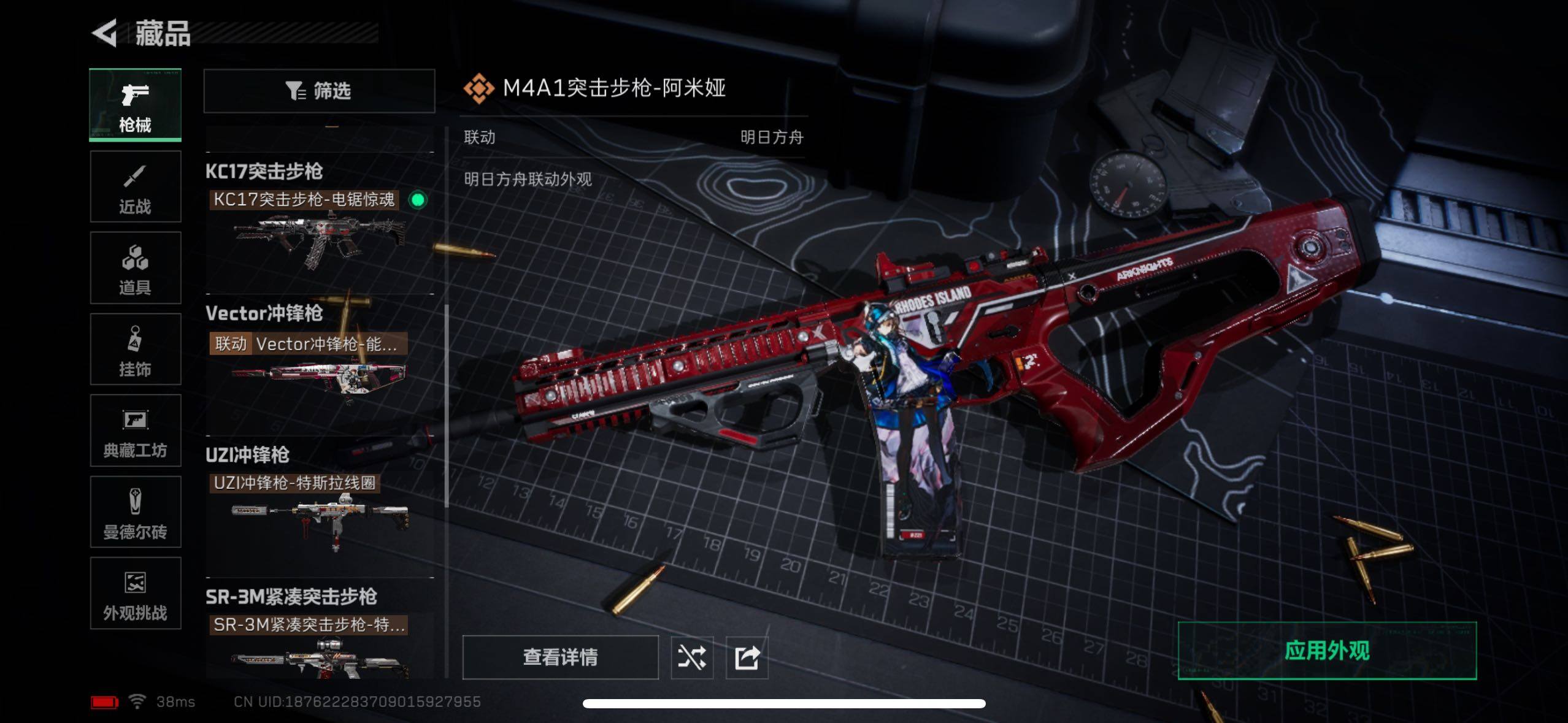 【传说外观】:M4A1突击步枪-阿米娅,ASh-12战斗步枪-鹅鸭杀,AK-12突击步枪-特斯拉线圈,SCAR-H战斗步枪-启航,KC17突击步枪-电锯惊魂,Vector冲锋枪-能天使-午夜邮差,UZI冲锋枪-特斯拉线圈,SR-3M紧凑突击步枪-特斯拉线圈,勇士冲锋枪-能天使-午夜邮差,QCQ171冲锋枪-鹅鸭杀,QJB201轻机枪-鹅鸭杀