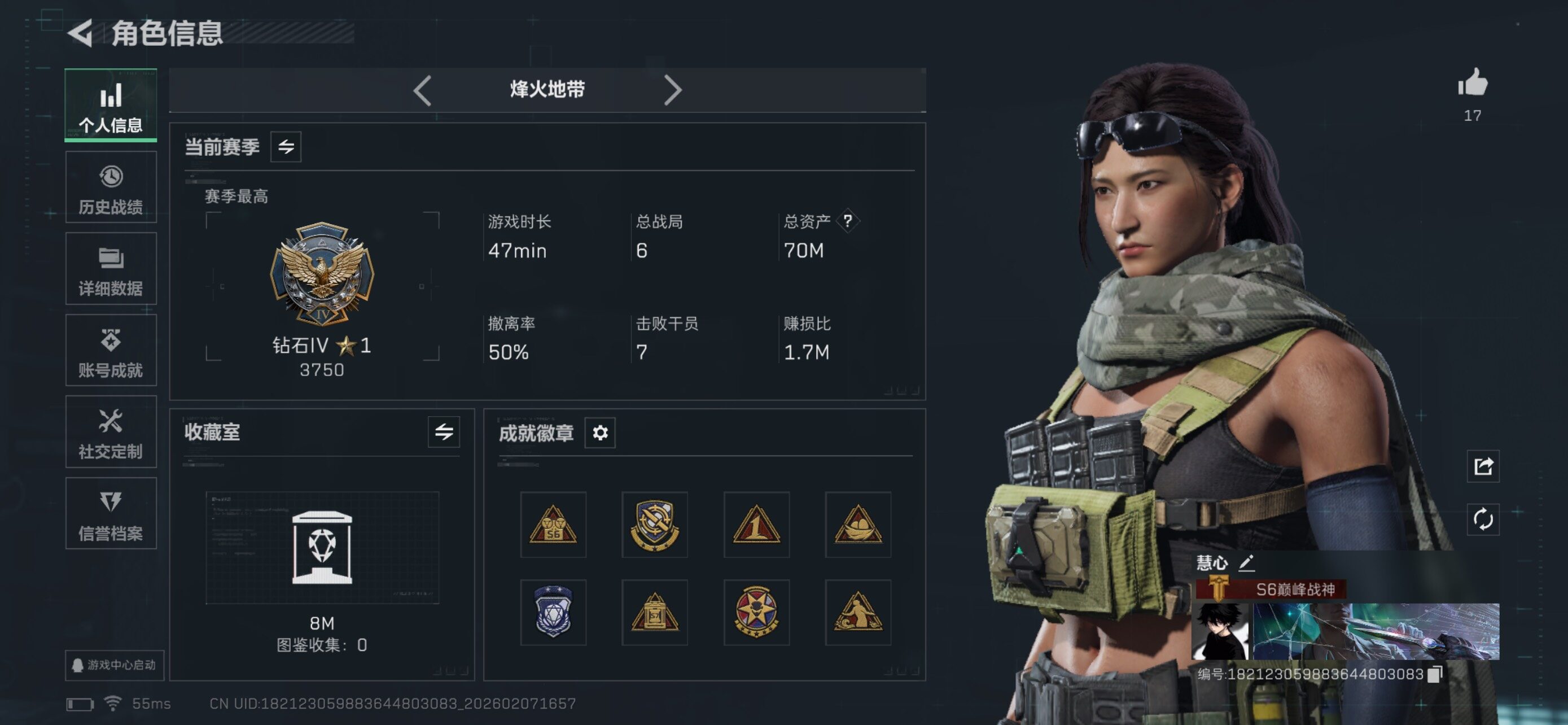 [16717290]70m总资产-3356k哈伏币-60烽火等级-钻石-37战场等级-列兵
