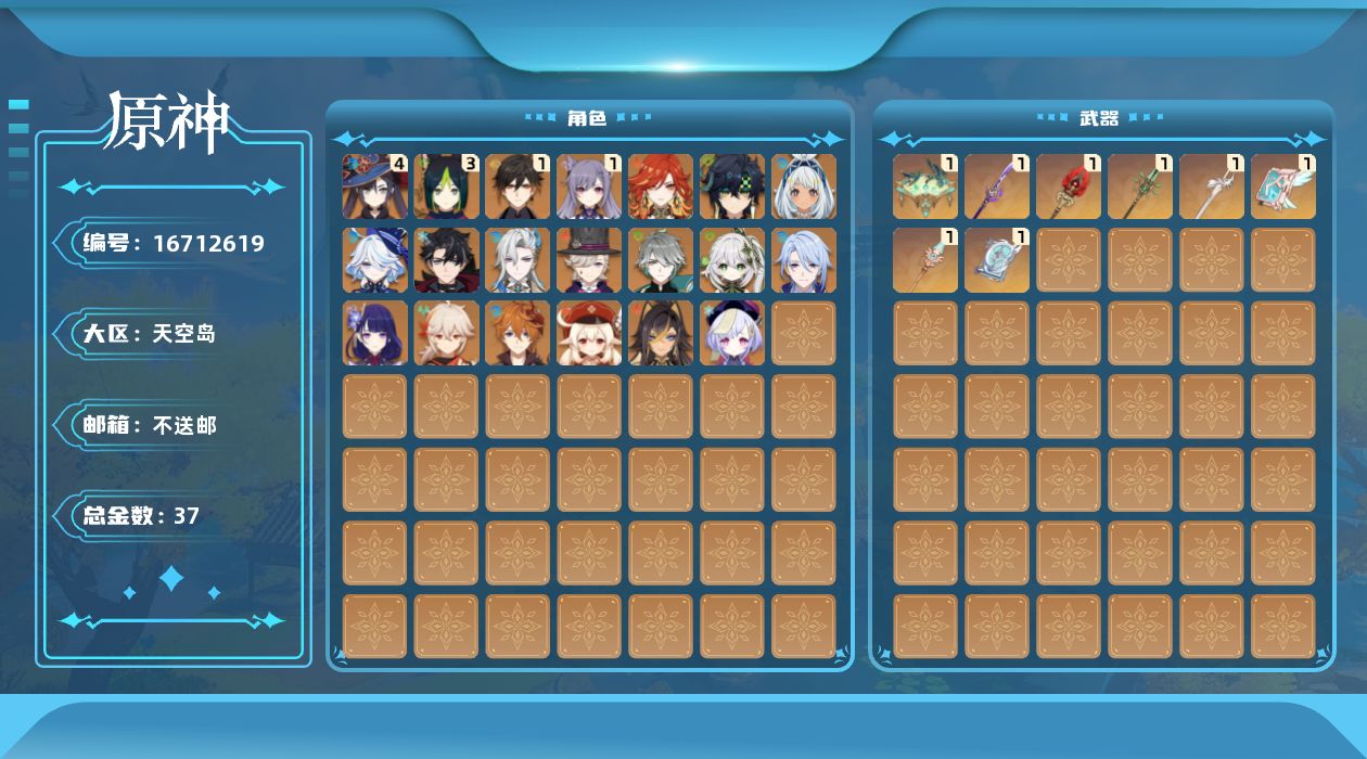 [16712619]58级/37黄/女主/20个五星角色/8个五星武器