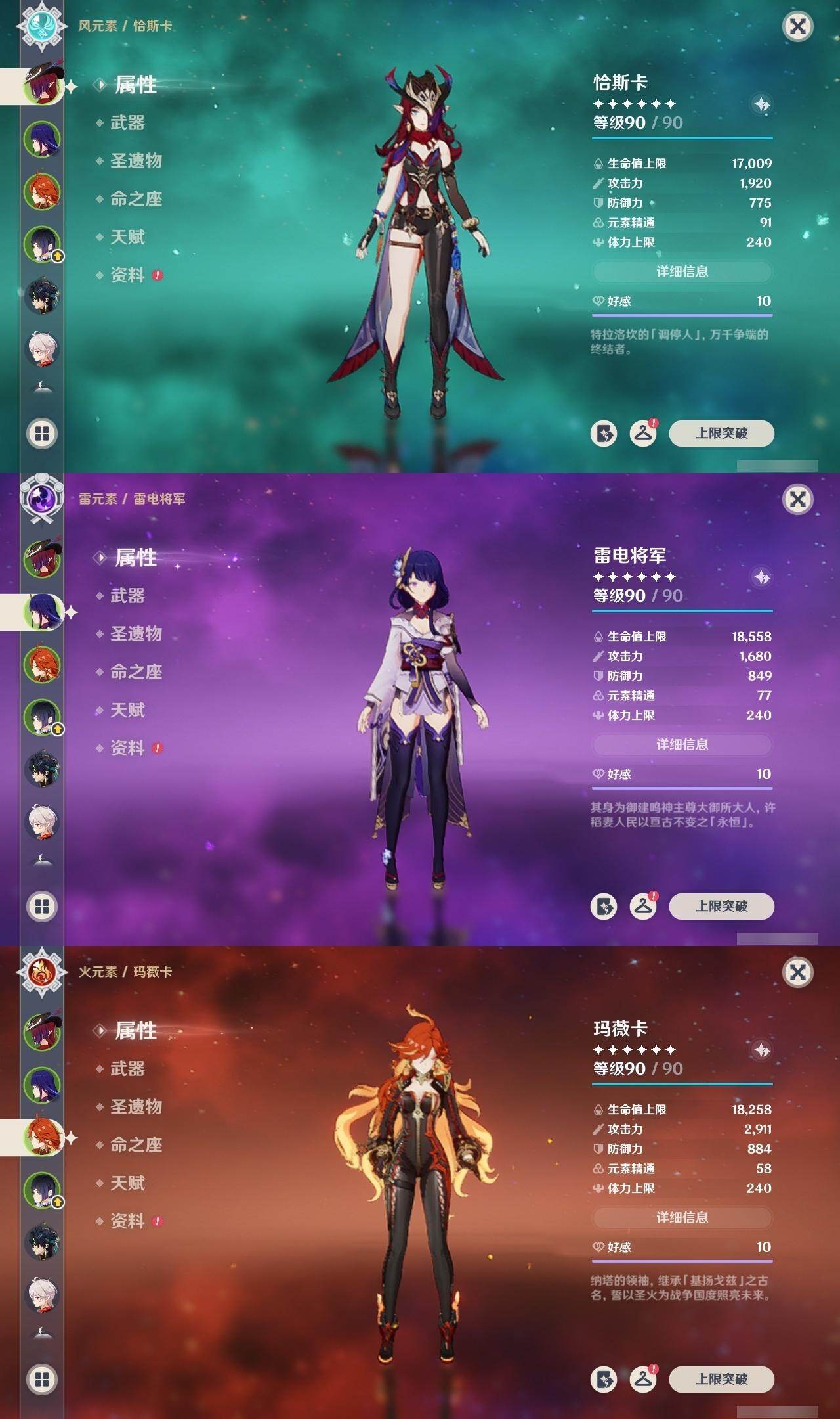 雷电将军,枫原万叶,申鹤,胡桃,迪卢克,琴,七七,莫娜,刻晴