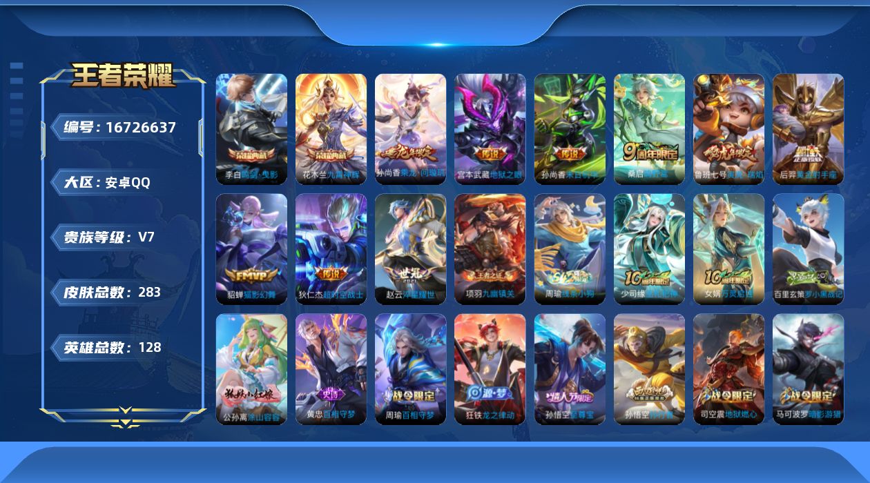 [16726637]安卓Q-283皮肤-2典藏皮肤-10传说-88史诗