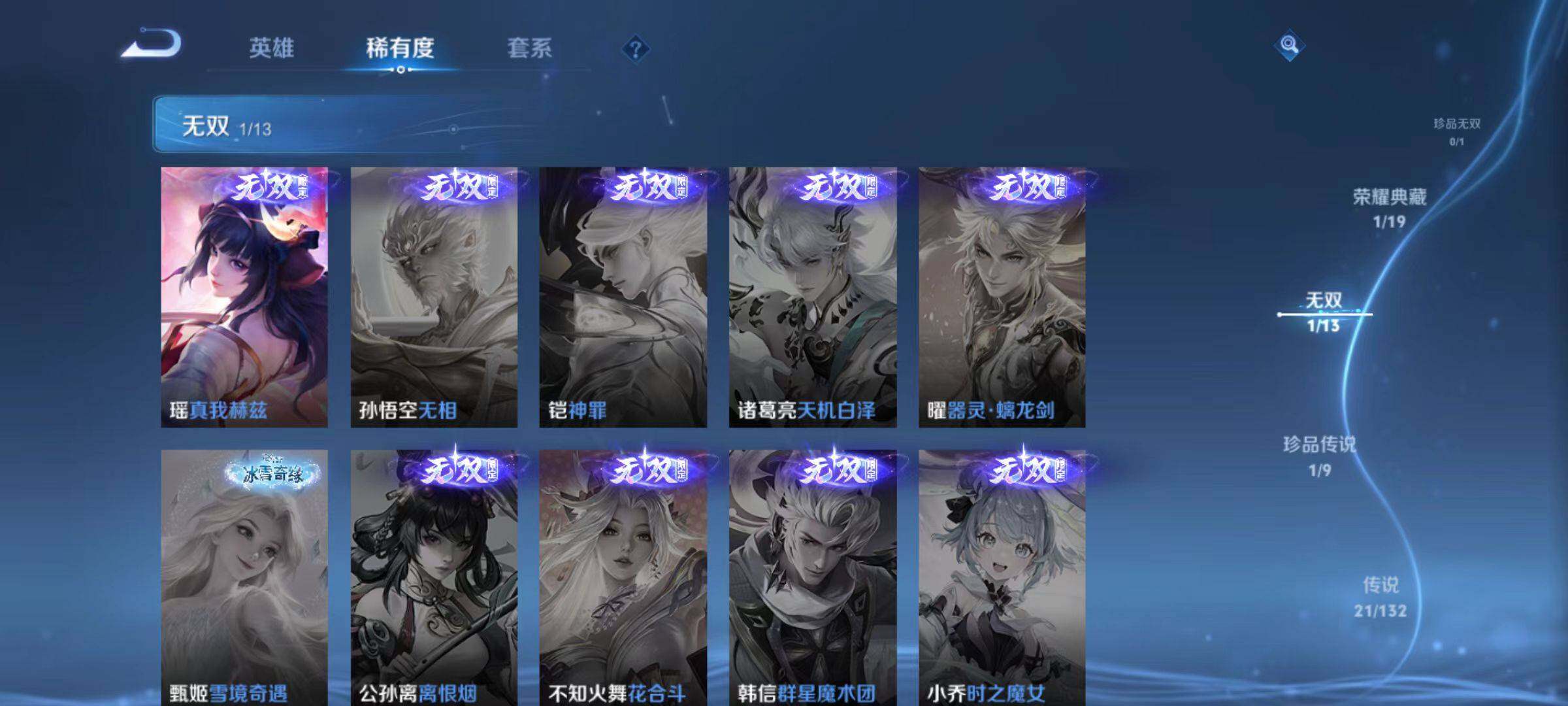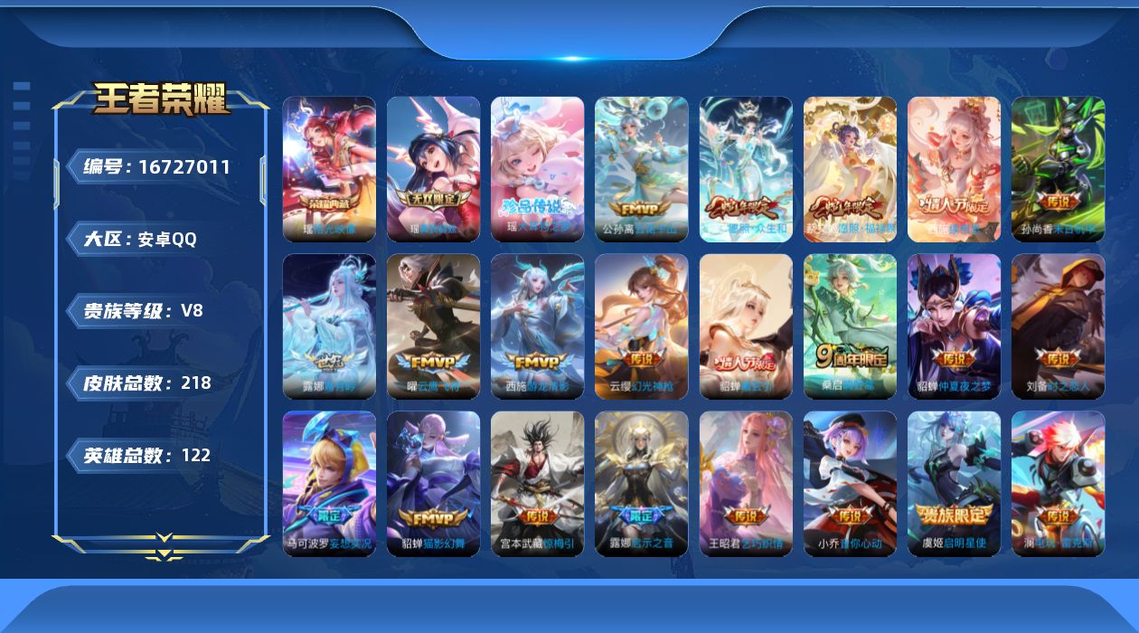 [16727011]安卓Q-V8-218皮肤-1典藏皮肤-1无双-1珍品传说-21传说-63史诗